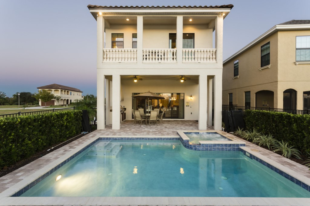 Newly completed in 2014, this stunning lake view home in Reunion Resort offers a luxurious base for a dream vacation with extended family and friends. The stylish, professional décor of this 5 bedroom, 5 ½ bath, 2 storey home provides a welcoming and relaxing ambiance for guests to return to after a busy day at the theme parks. The home’s upscale amenities include a private pool, luxury spa, games area and home theater to keep the fun flowing night and day!
