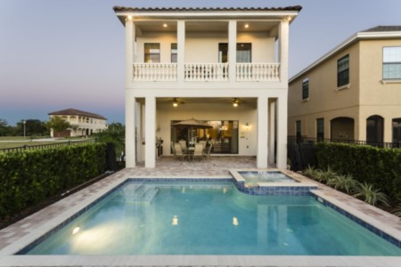 This luxurious pool home is located in the Masters Landing area of Reunion Resort, close to Muirfield Loop and the Jack Nicklaus designed PGA course.
