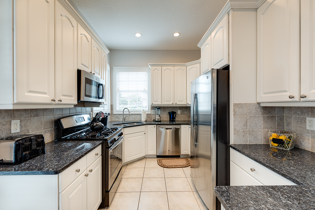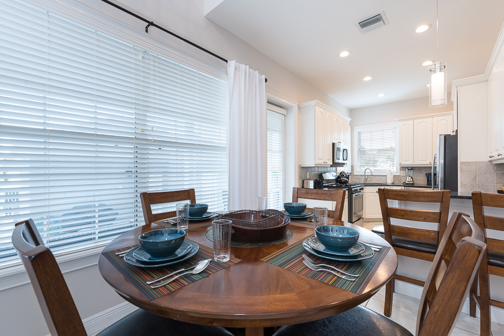 The family dining area and fully equipped kitchen allows guests to dine in the comfort of their own home whenever they choose!