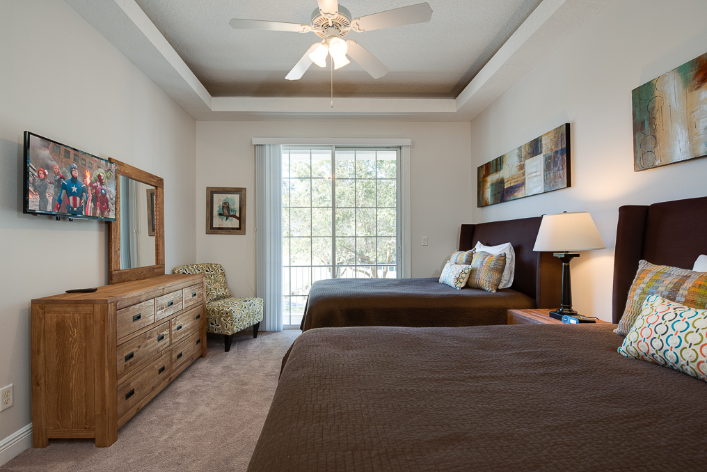 A room with 2 full sized beds, perfect for children or guests joining you on vacation.