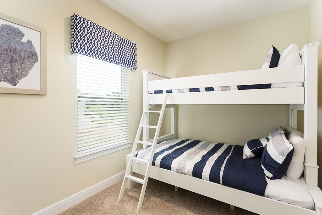 A room with a twin and full bunk bed is also located in the mid section of the home.