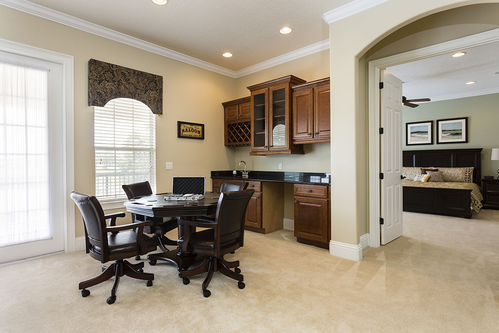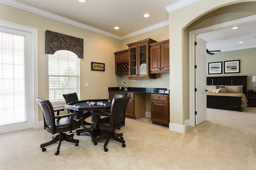 The home benefits from a very spacious games area on the upper floor and includes a poker table, luxury pool table and TV area with comfortable seating. All with spectacular views and balcony access over the pool deck and golf course.