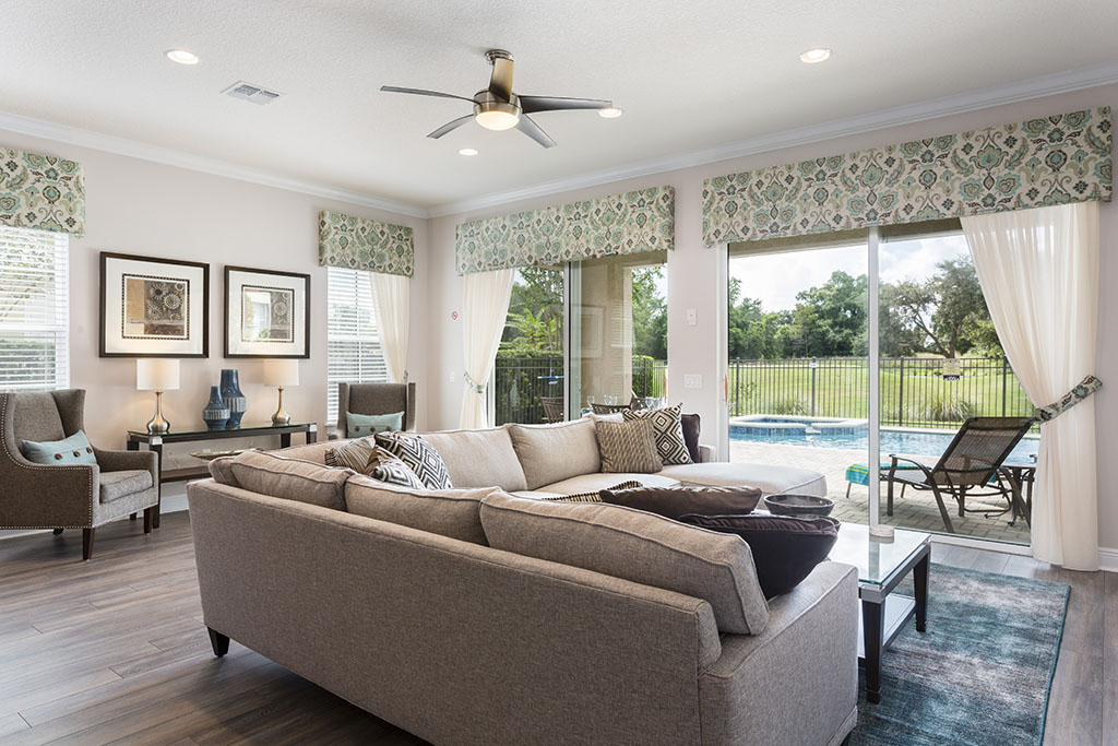 This bright, modern luxury pool home enjoys a perfect spot overlooking the Palmer designed PGA course at Reunion Resort.