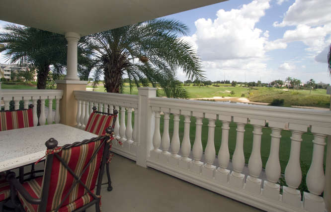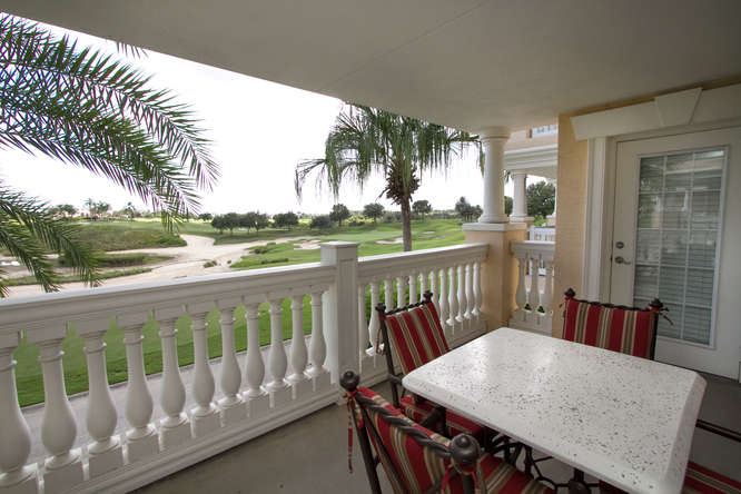 A beautiful 2nd floor balcony area provides excellent golf views over the Watson course's beautiful 12th hole (Par 3)