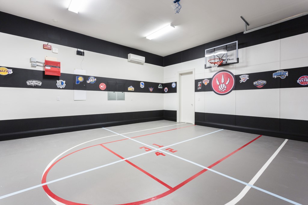 You can choose to relax in two family gathering areas, the pool area with spa, a play room, games area, home theater, and even a basketball practice area.