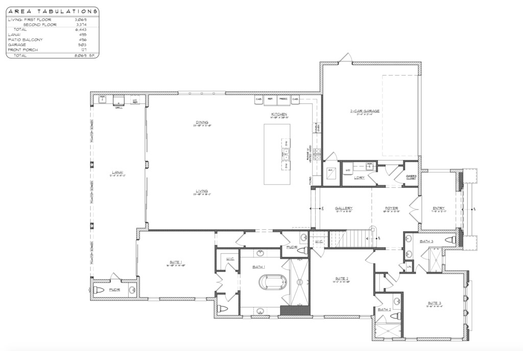 A covered lanai includes a summer kitchen
