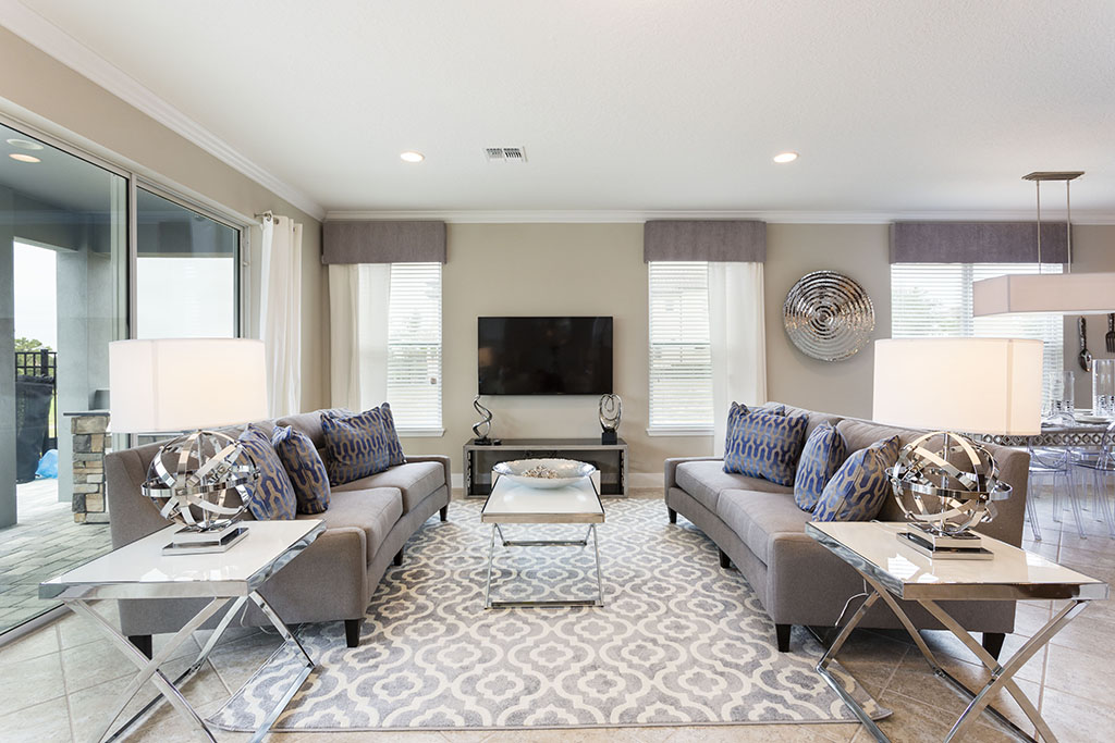 The spacious family living area offers a bright open view out onto the pool deck, with an abundance of natural Floridian daylight filling every corner of the first floor.