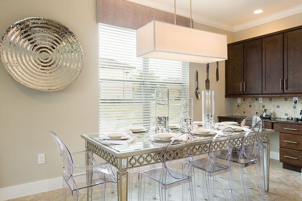A comfortable and welcoming gathering area includes a wall mounted LCD TV. Nearby, the 8 seat family dining area, couples a combination of traditional and contemporary furnishings to create a beautiful focal point for mealtimes.