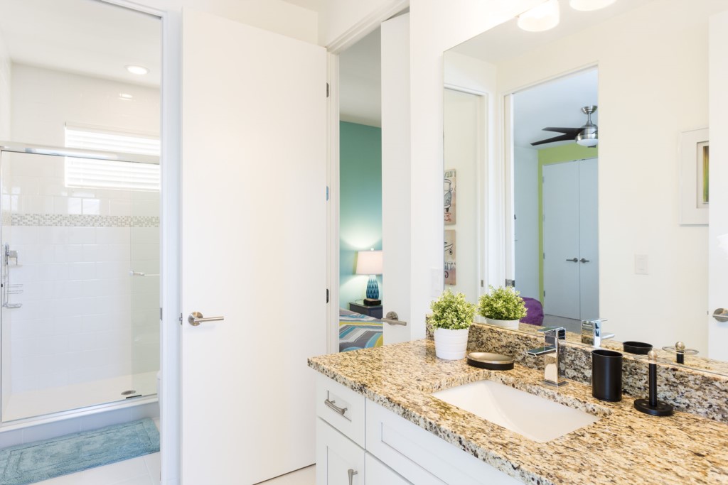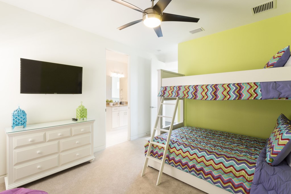 A full/twin bunk room shares a Jack n Jill style bathroom (also doubles as a family bathroom for the loft area) with;