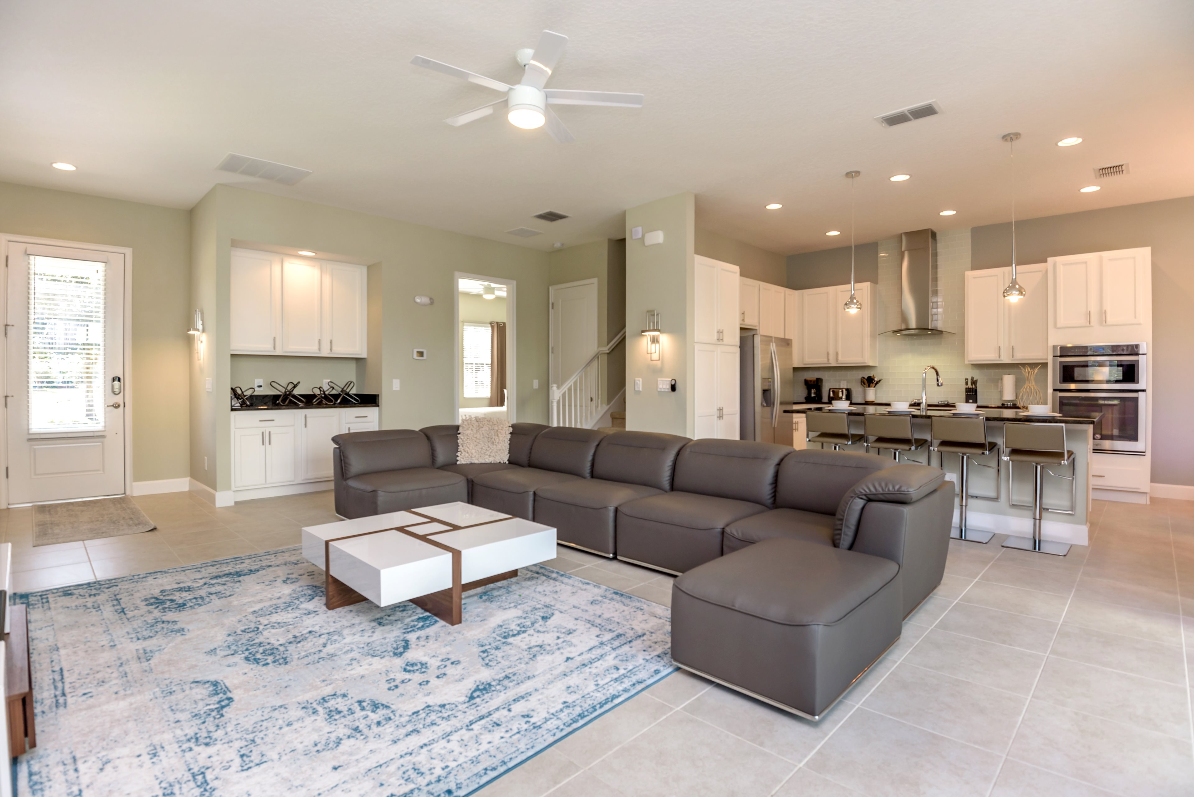 Open the doors to this villa and be amazed. The many windows located in this home allows light to flood the bottom floor highlighting the modern decorated living area. A set of sofas surround the LED SMART TV, and an open floor plan makes entertaining a breeze.