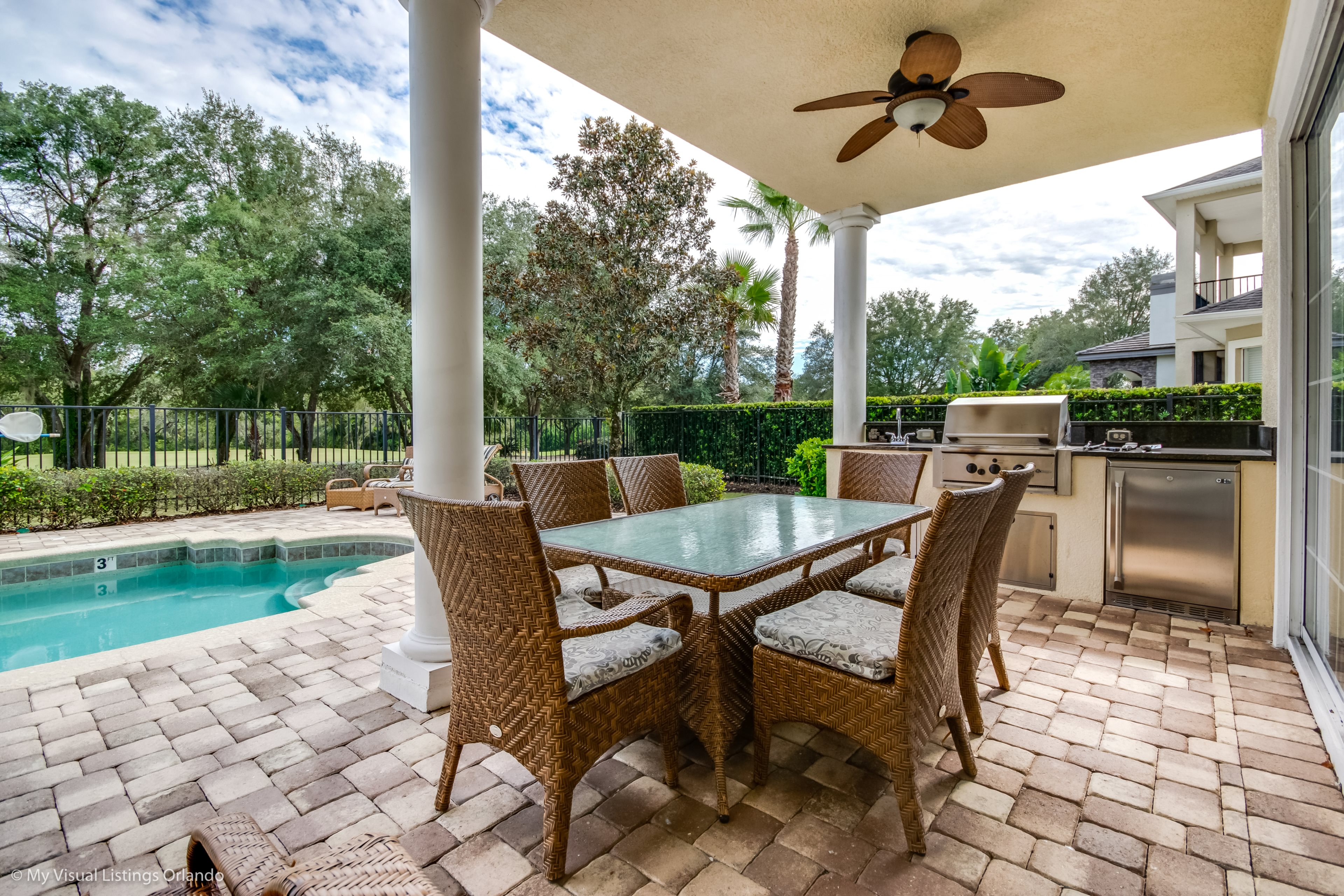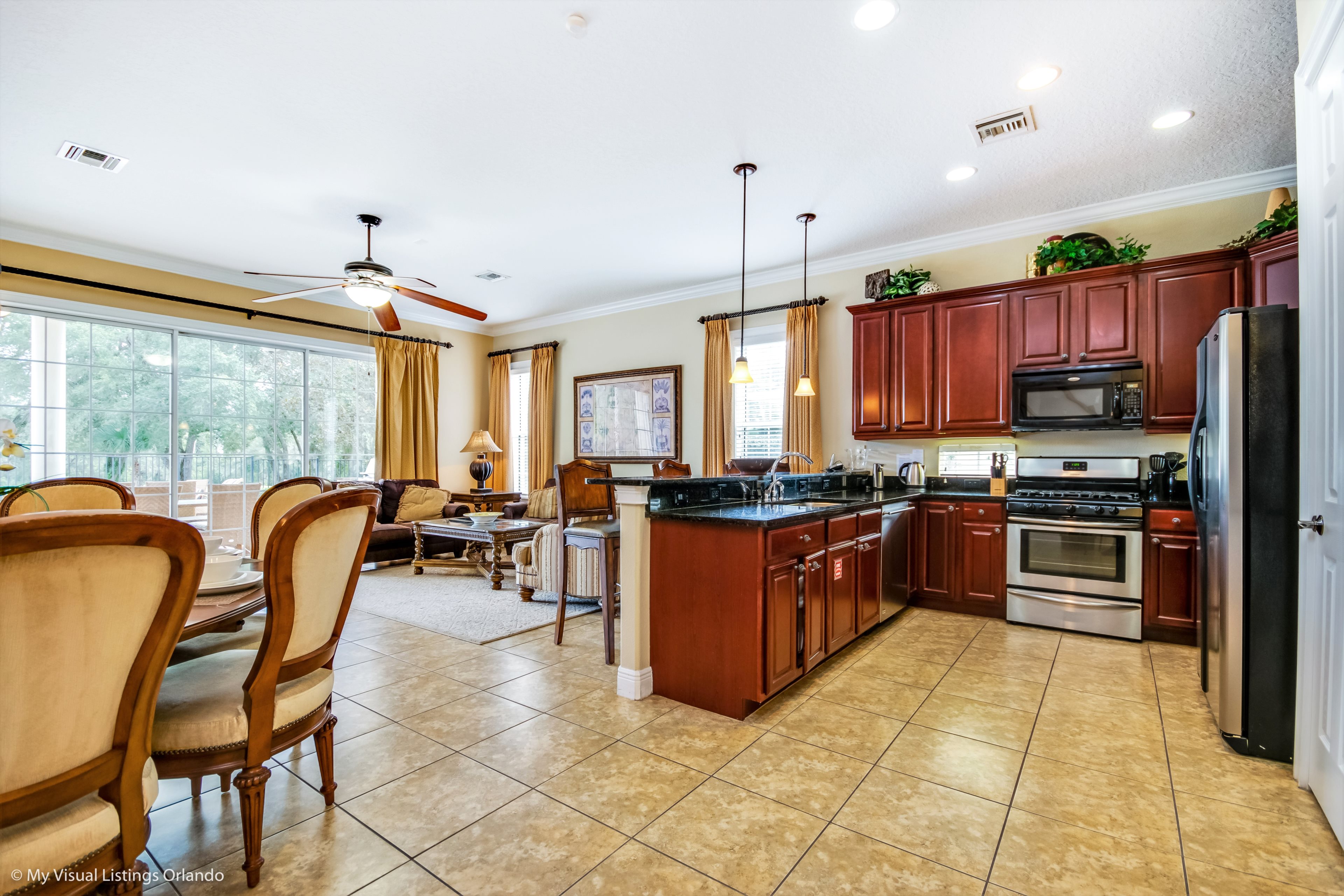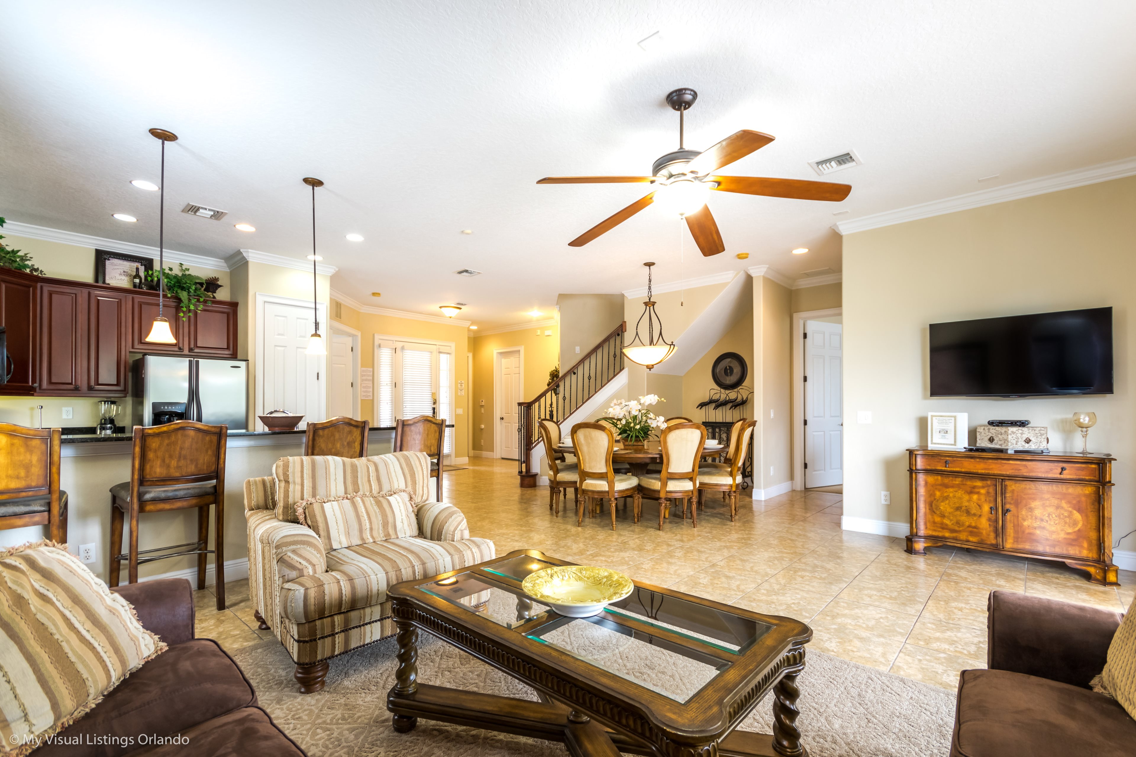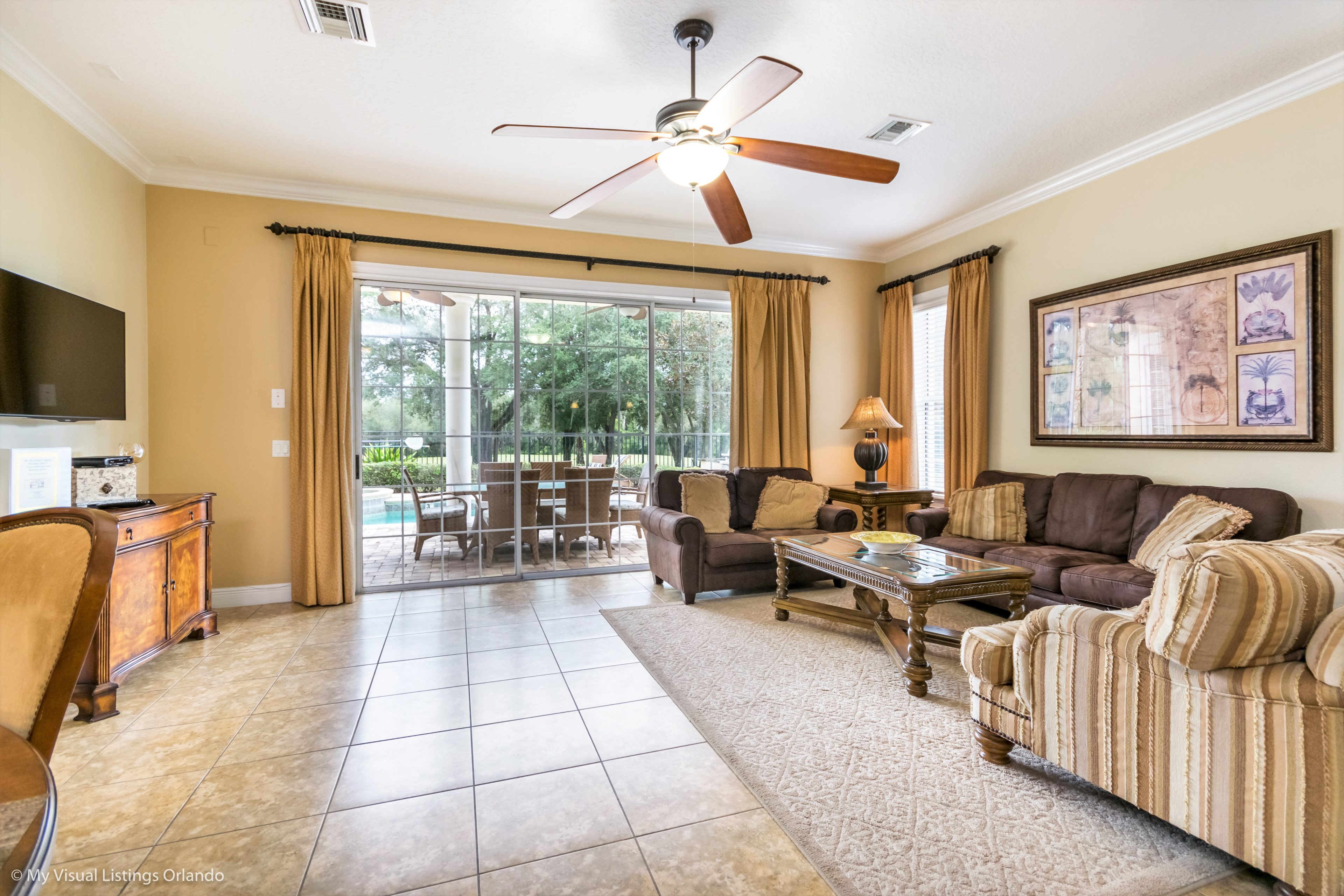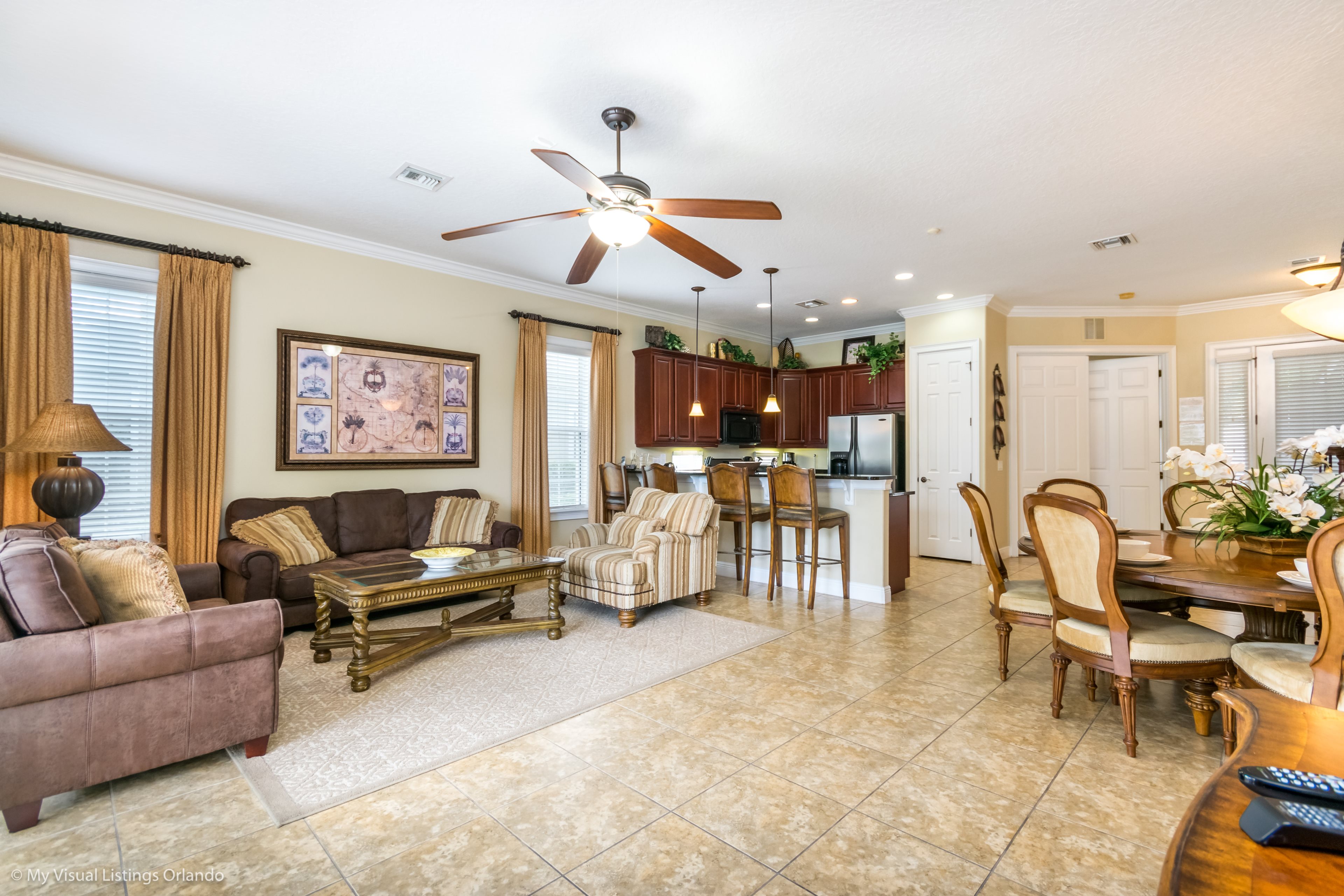 This lovely 5 bedroom home is located in the much sought after Homestead within the Reunion Resort allowing easy access to all facilities the resort has to offer. The Annika golf academy is within walking distance, as is the hotel with it's bars and restaurants.