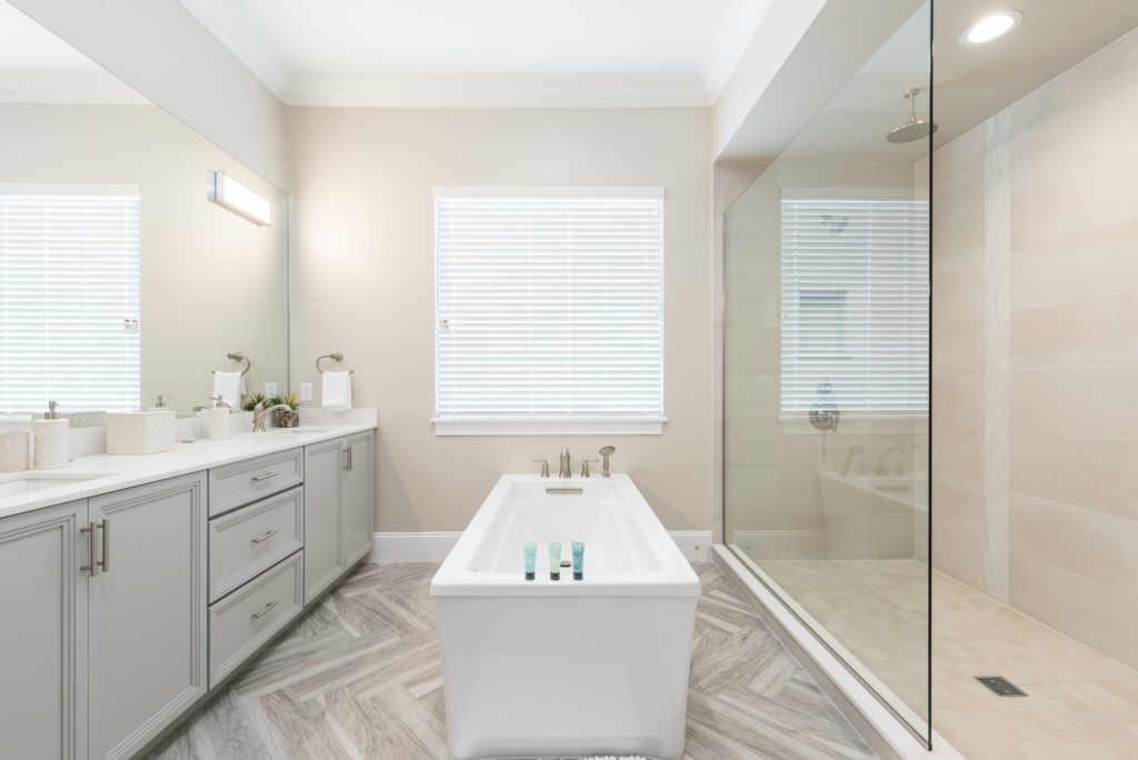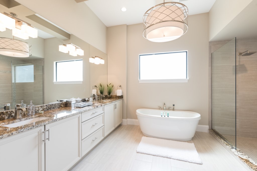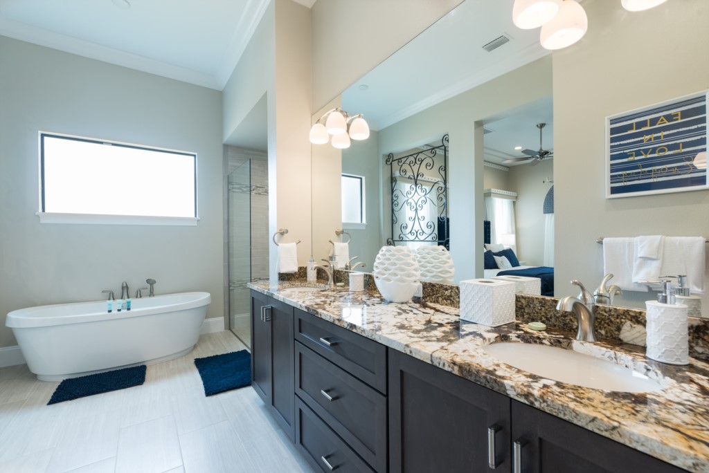 King Master Suite with pool views - Bath, large shower, twin vanities
