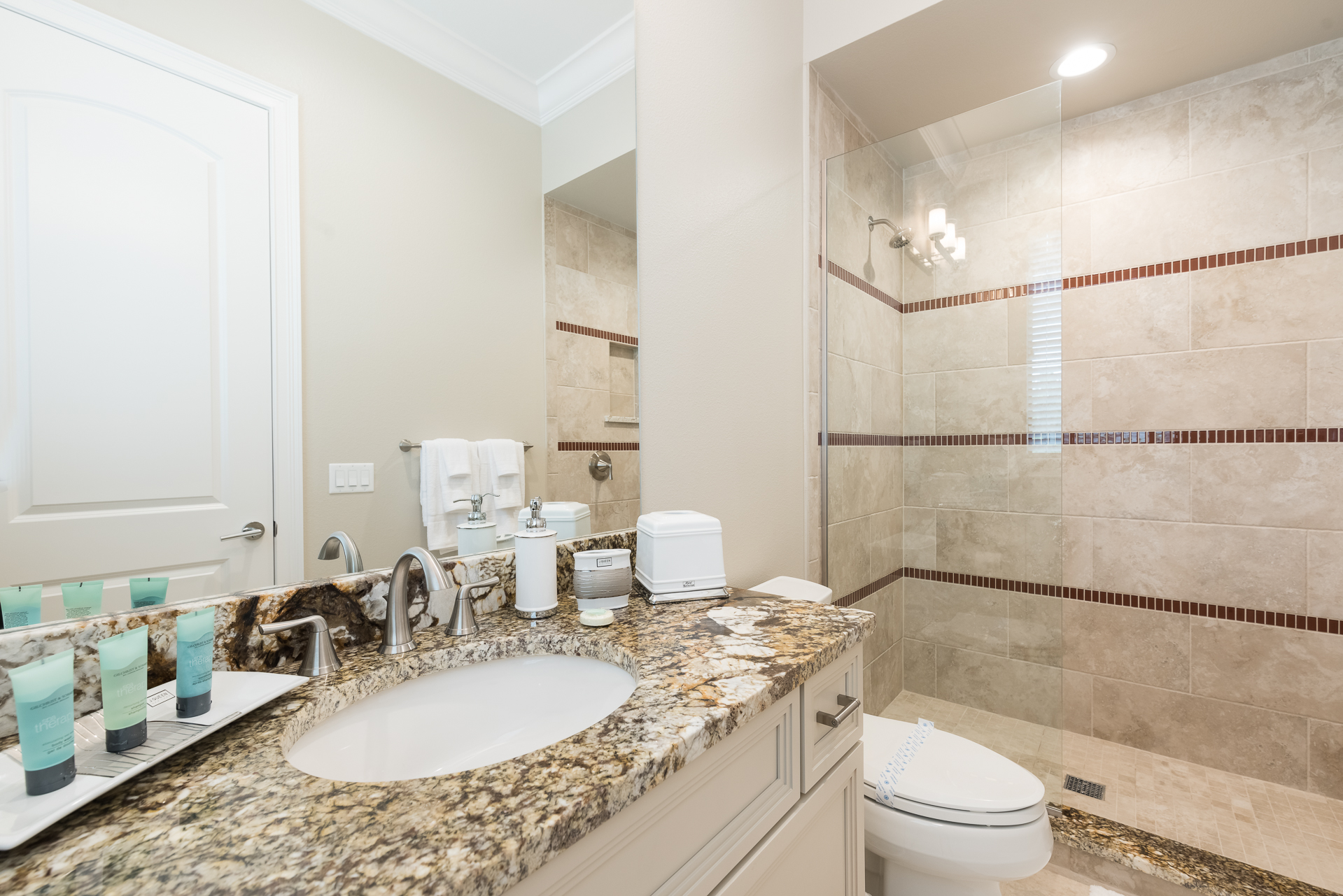 King Master Suite with pool access - Feature Bath, Large shower, twin vanities