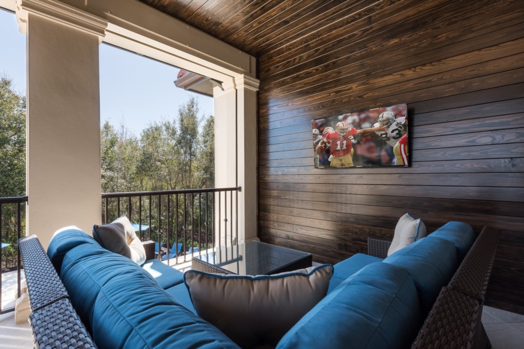 Screened balcony with outdoor ping pong table