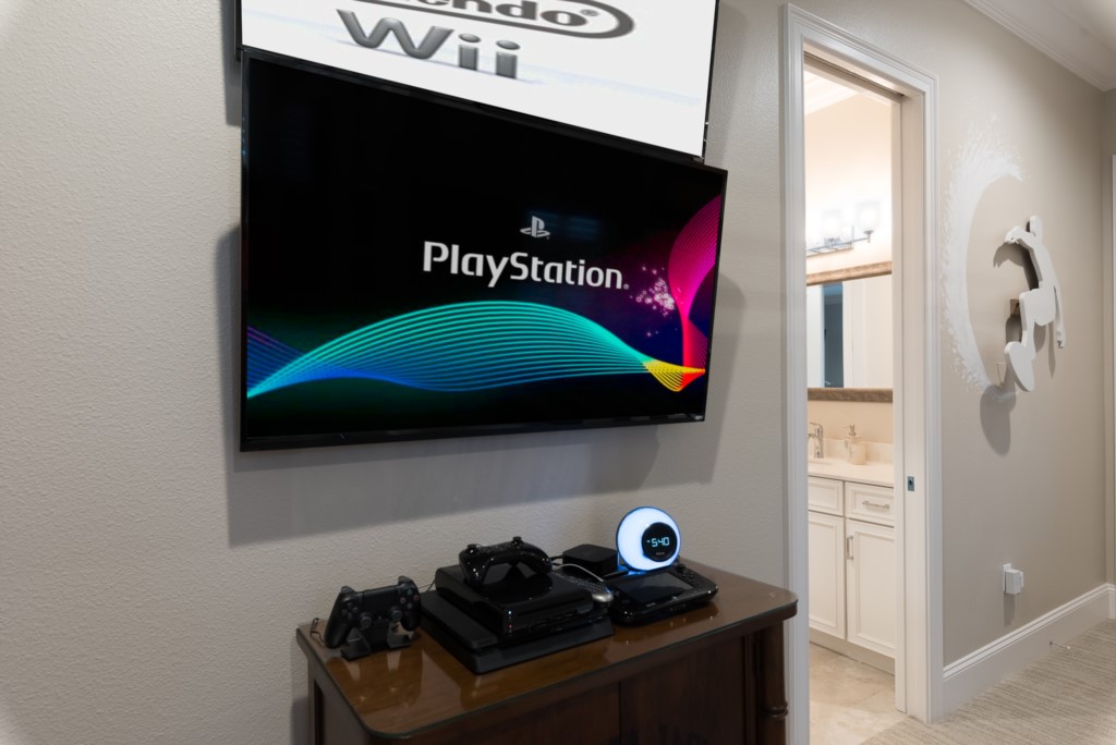 When you are finally ready to call it a day, choose from 7 ensuite bedrooms, three of which are unforgettable Master Suites (one Master is handicap accessible, located on the first floor). The younger family members can also choose their living spaces, as we offer the girls a “glammed up, dress-up” make-up ready room fit for a star, equipped with a karaoke stage. The boys will find a surfer themed room, equipped with a cutting-edge video game system featuring multiple consoles and a family-friendly game library. For added entertainment at no additional charge, this home offers an acitivities closet with bicycles, golf clubs, pool toys, DVD's, and video games for the whole family to enjoy.