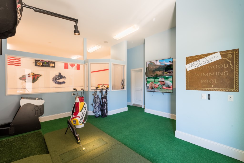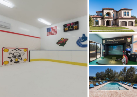This most impressive vacation rental home provides unrivaled entertainment options, including a 'state of the art' golf simulator with 40 famous golf courses. Also a first in Orlando: a synthetic ice rink. Complete with sticks, pucks and a goal, you can dream of being an Orlando Solar Bear for the day!