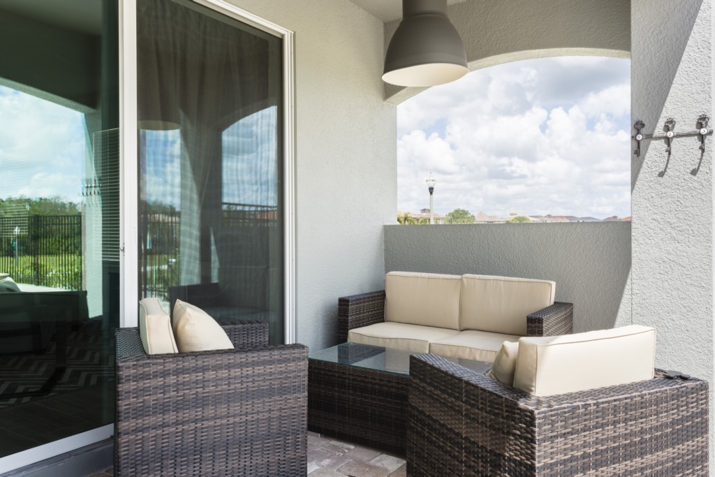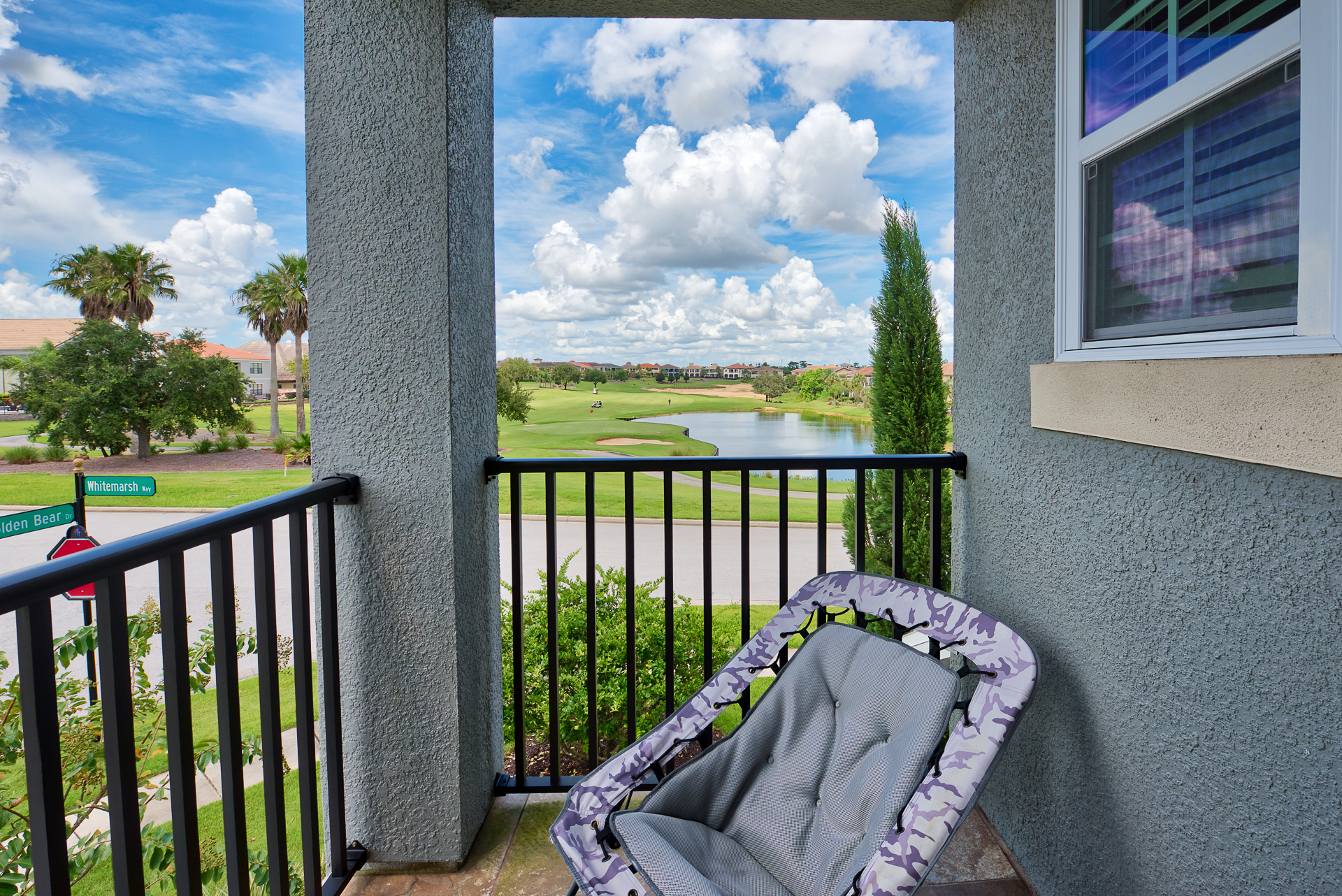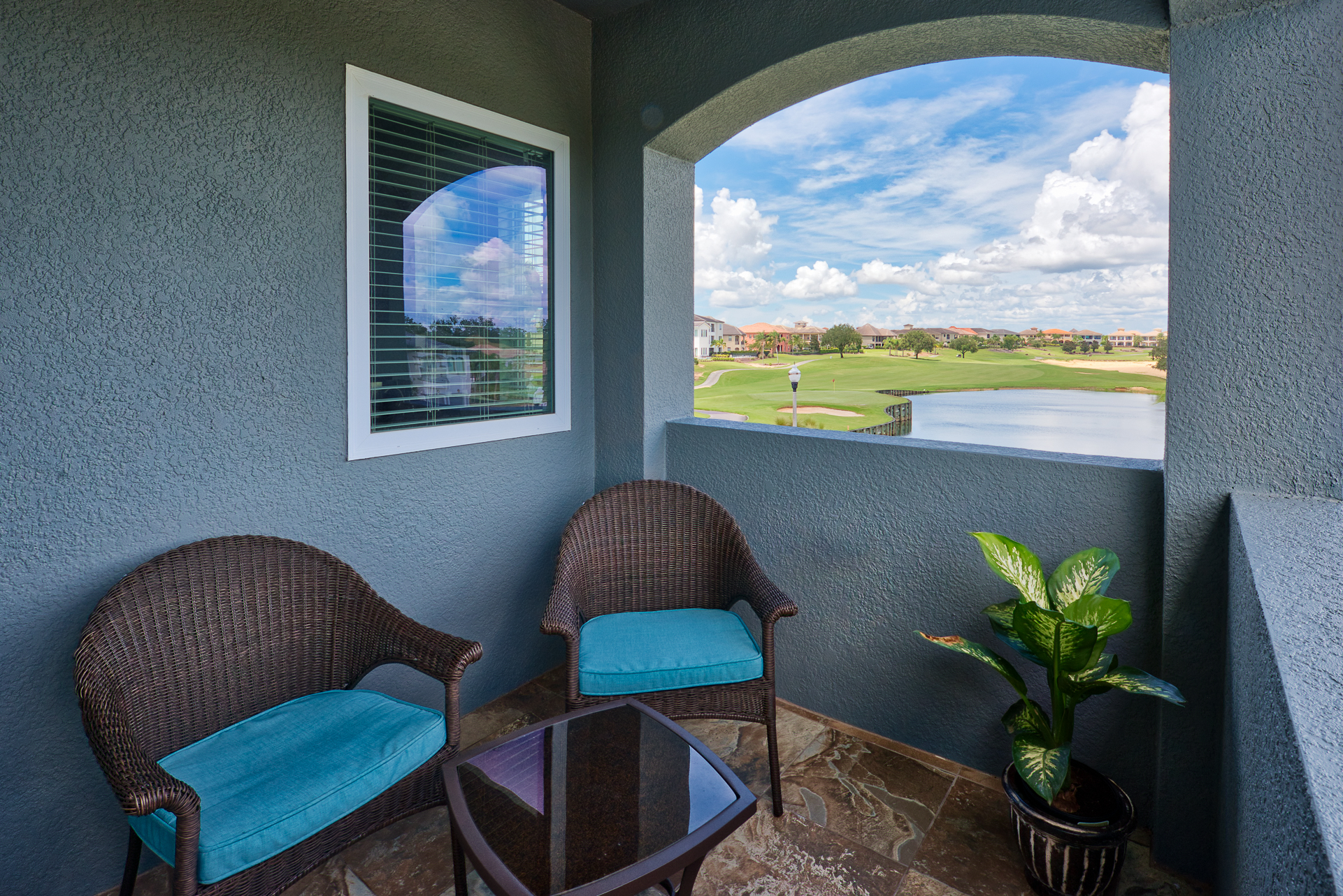 2x upper floor balconies with 2x patio chairs in each and lake views