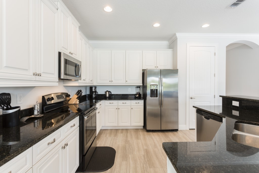 Refrigerator/freezer, oven, microwave, dishwasher, coffee maker, toaster, blender