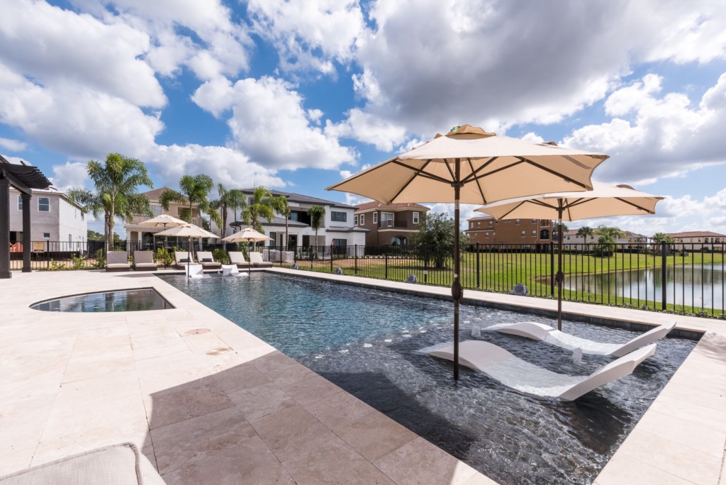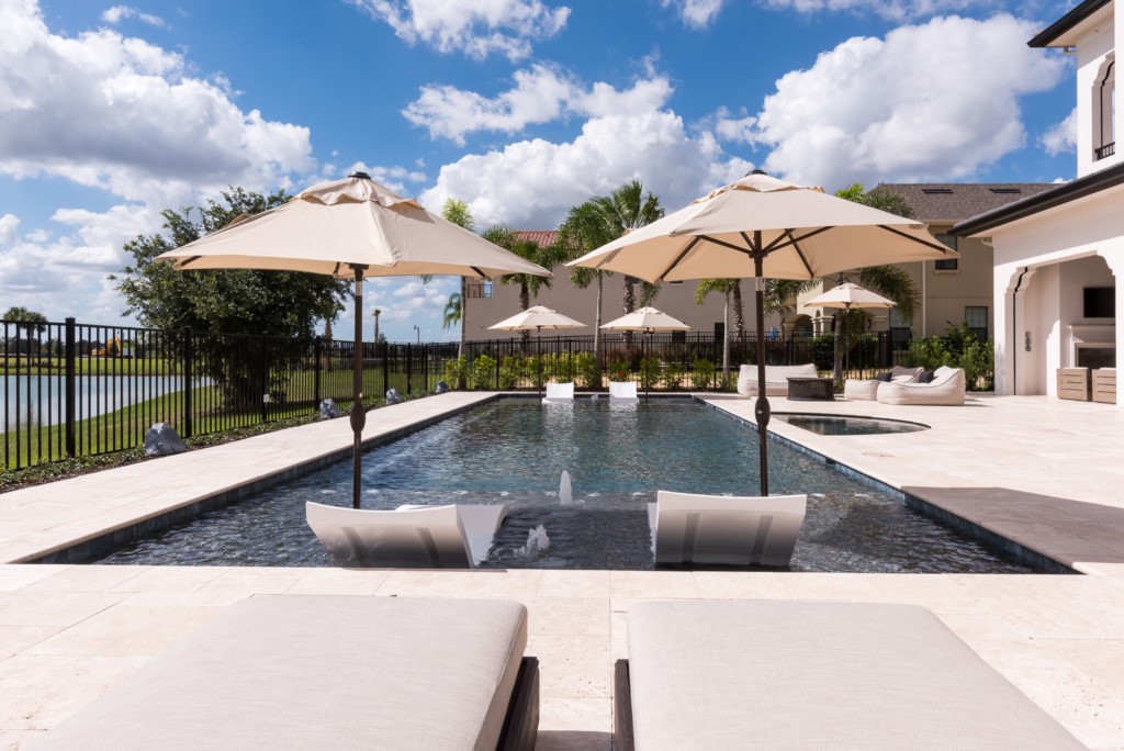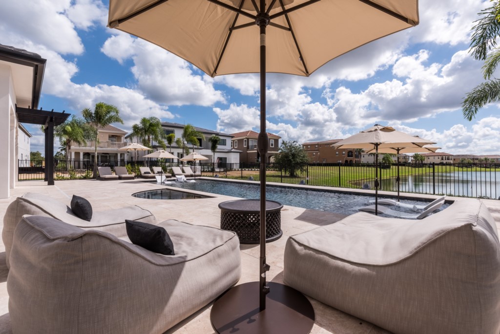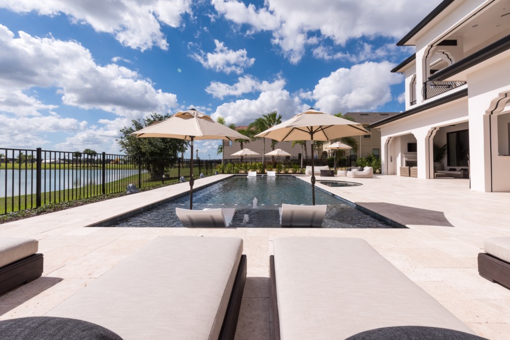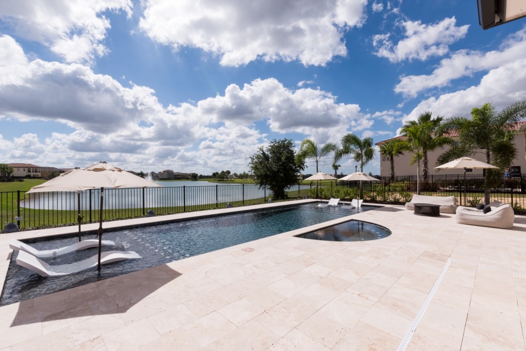 You’ll find plenty of room for everyone including 7 bedrooms, 7.5 baths, great room, loft, arcade, and “drive-in” indoor theater that doubles as an 8th bedroom. Don’t forget the outdoor amenitie (this is Florida after all), spacious lanais (upper and lower) with private pool, hot tub, and beautiful water views. You may even spot a heron or bald eagle near the waters just behind the lanai