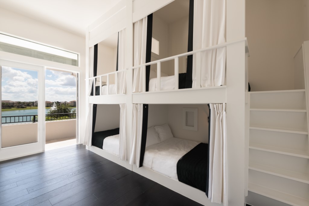 The Hangout with lake view- Full over Full bunks (4x Full sized beds) and access to upper lanai