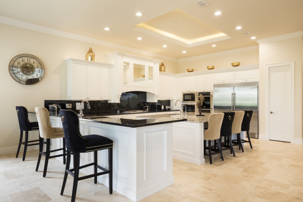 Fully equipped with a granite 3 seat breakfast bar and an island with an additional 4 seats