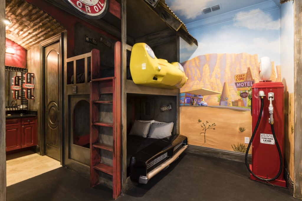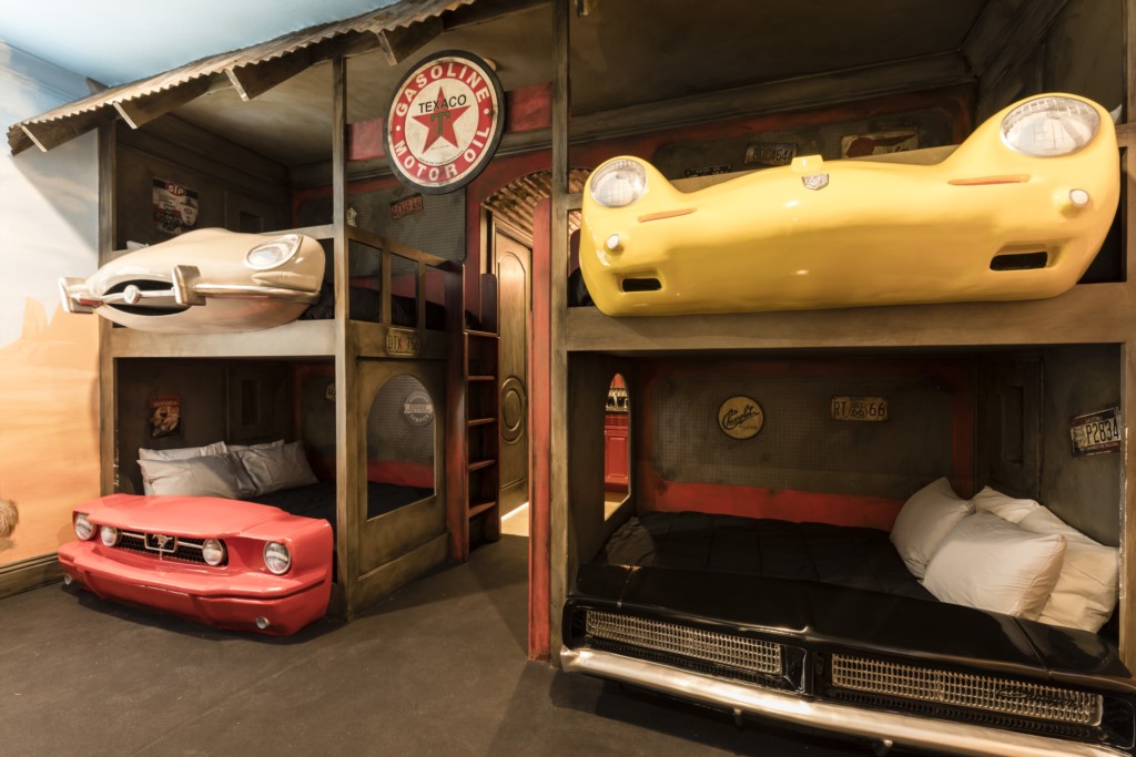 'Cars' themed bedroom with 2x sets of bunk beds (4x Full sized beds total) and an en suite (shower/bath combo)
