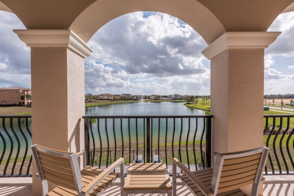 Furnished rear balcony overlooking the pool deck