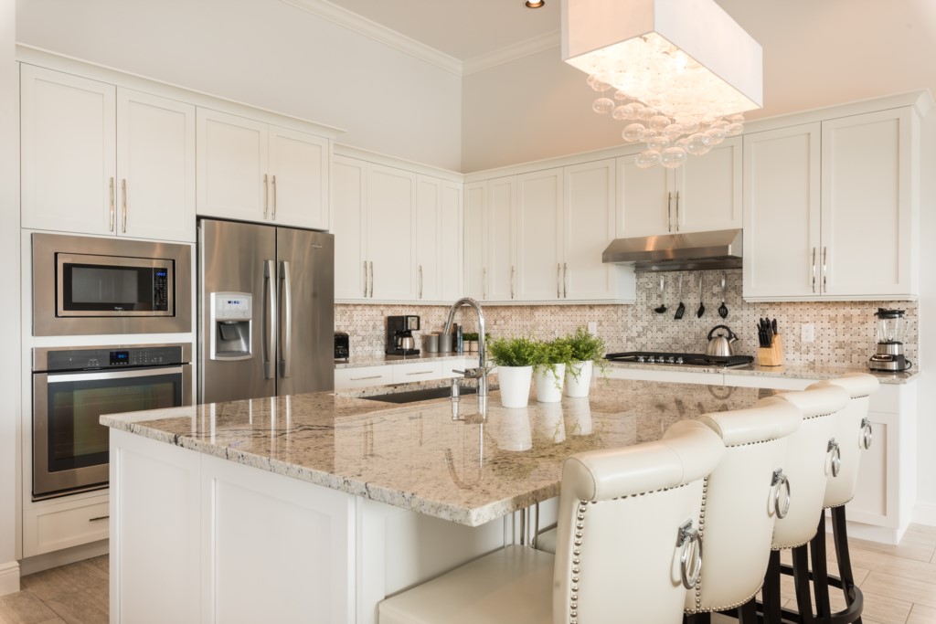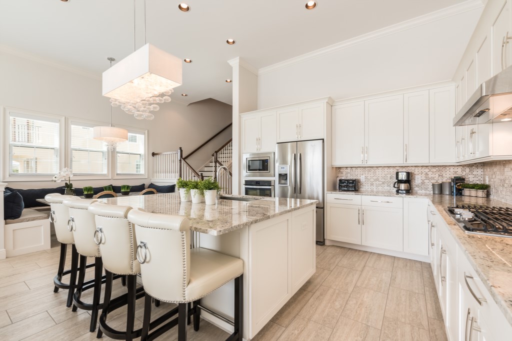 Fully equipped with granite four seat breakfast bar and oversized island