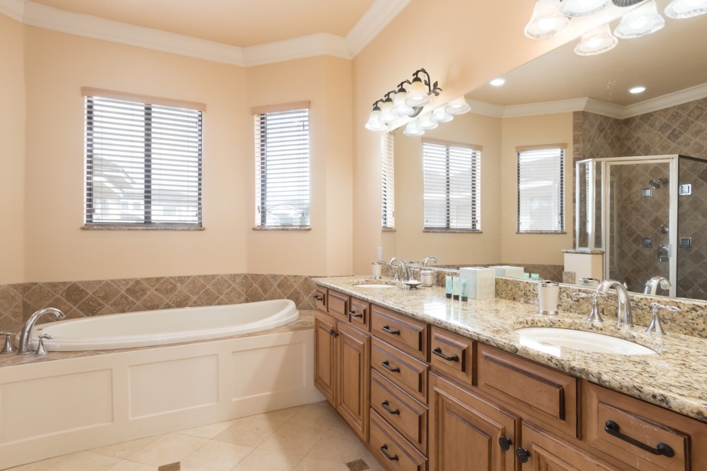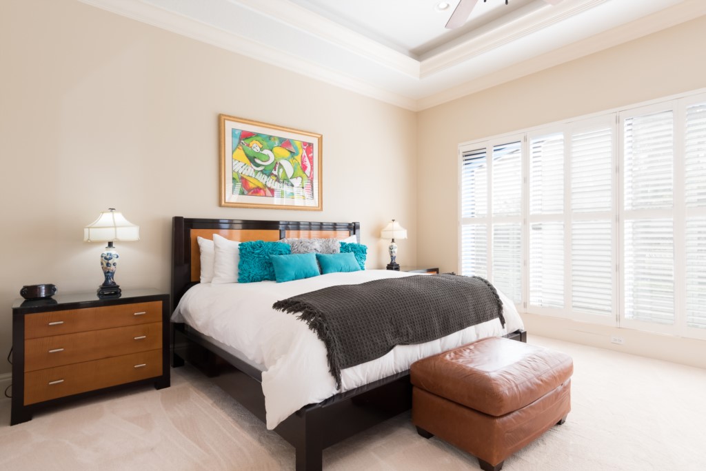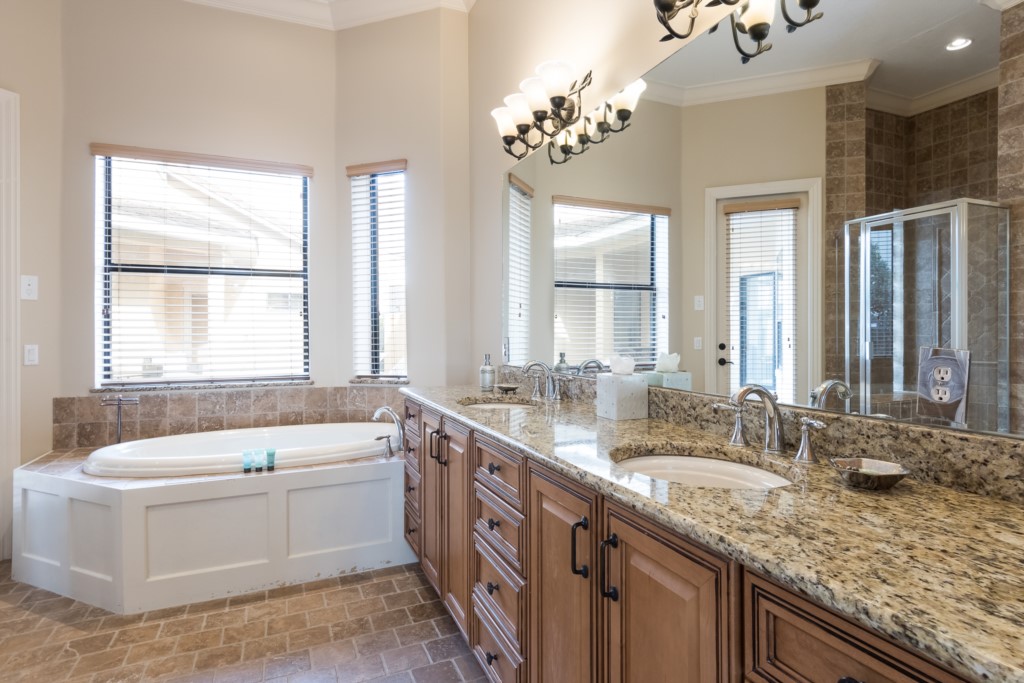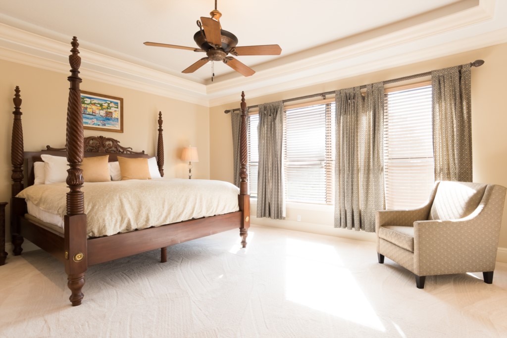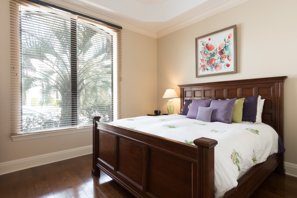 King sized Master (located downstairs) with en suite (shower, tub, twin vanities) and patio access