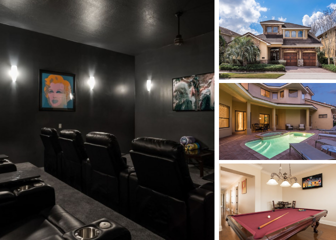 A home movie theater provide hours of fun and entertainment for you and your family as well as the private swimming pool and spa, perfect to enjoy the Florida sunshine while in the comfort of your own vacation home.