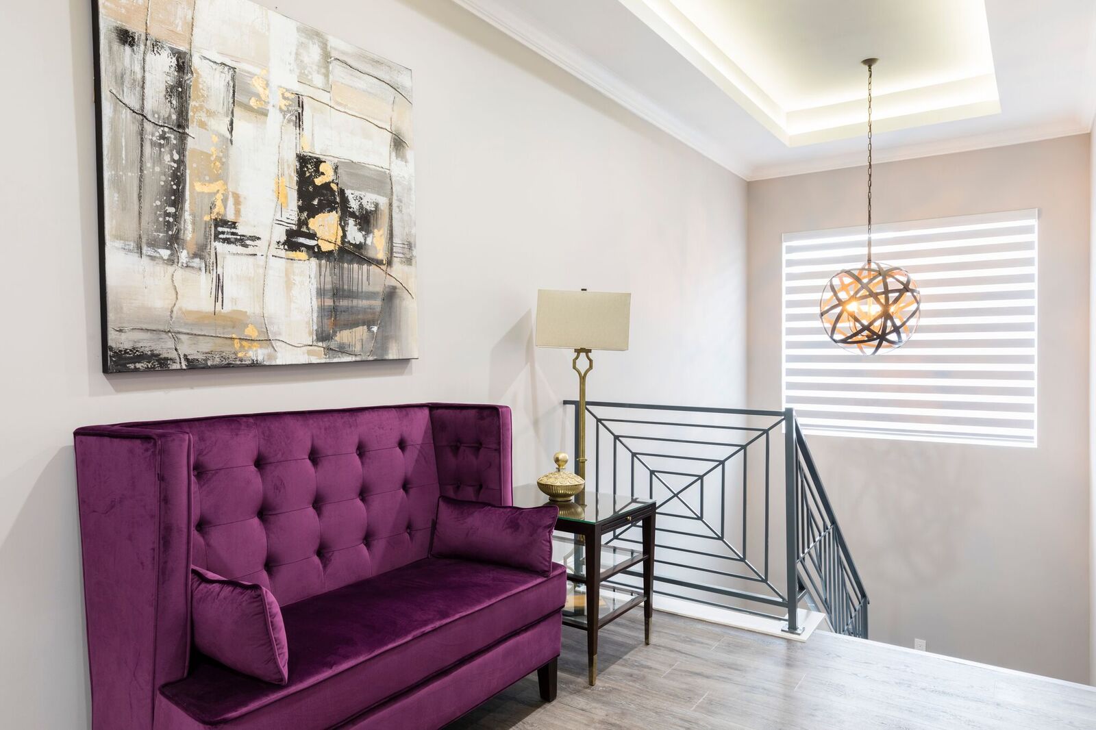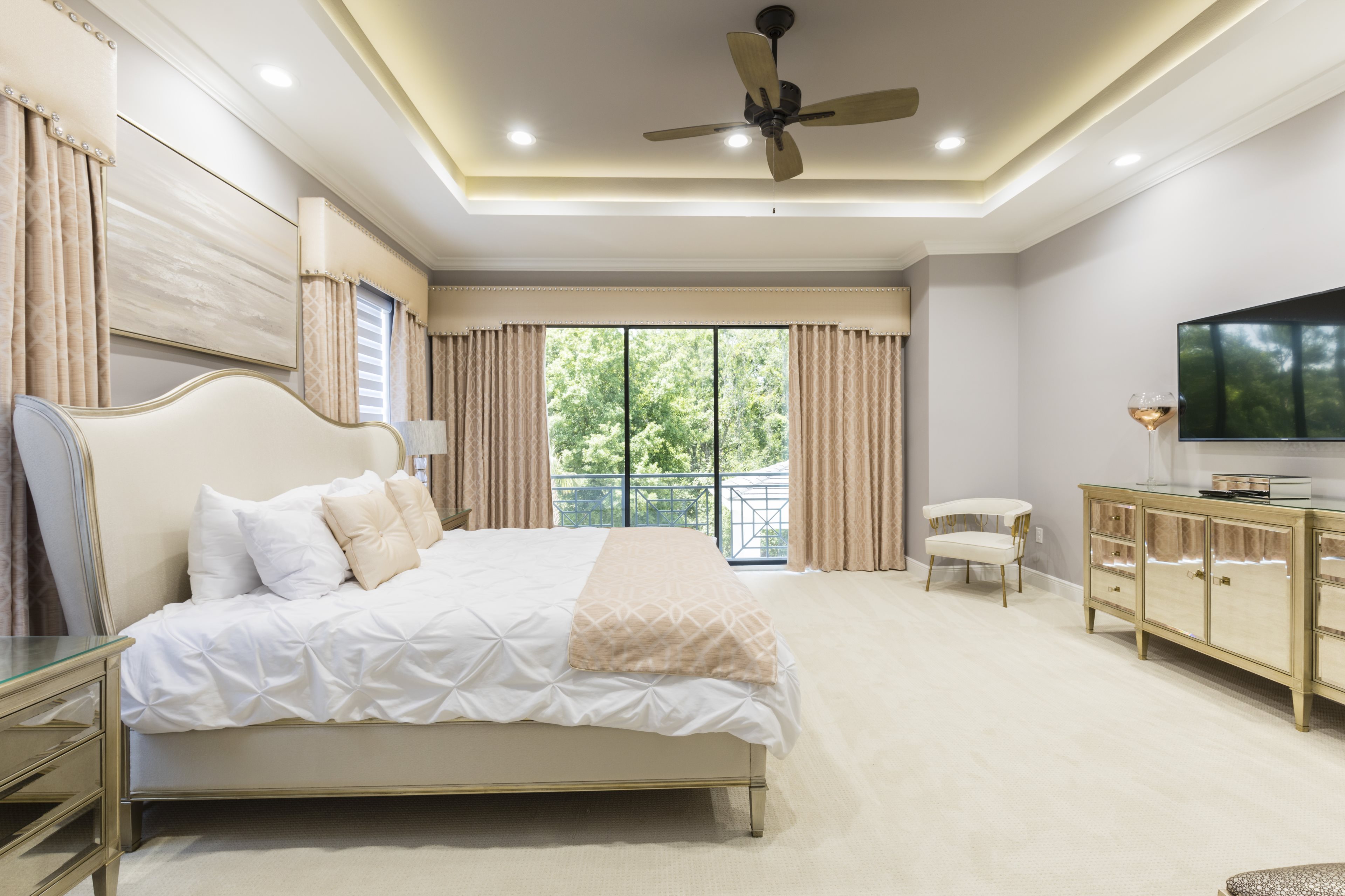 King sized Master with en suite (shower, tub, twin vanities), located upstairs with balcony access and 2x accent chairs