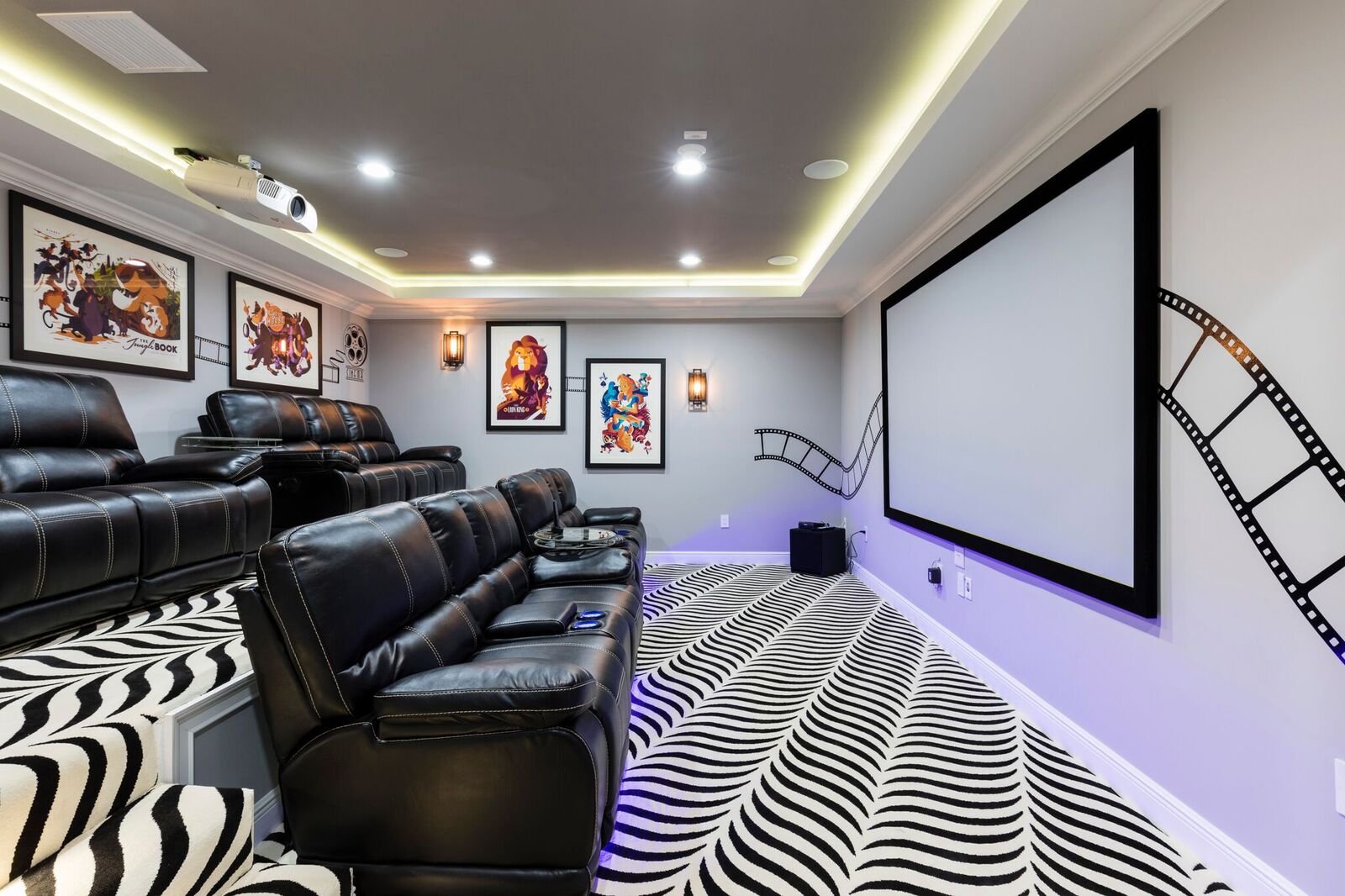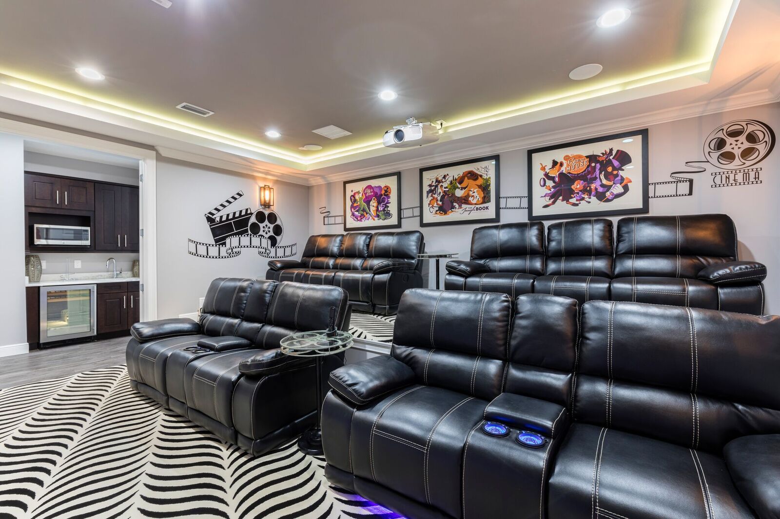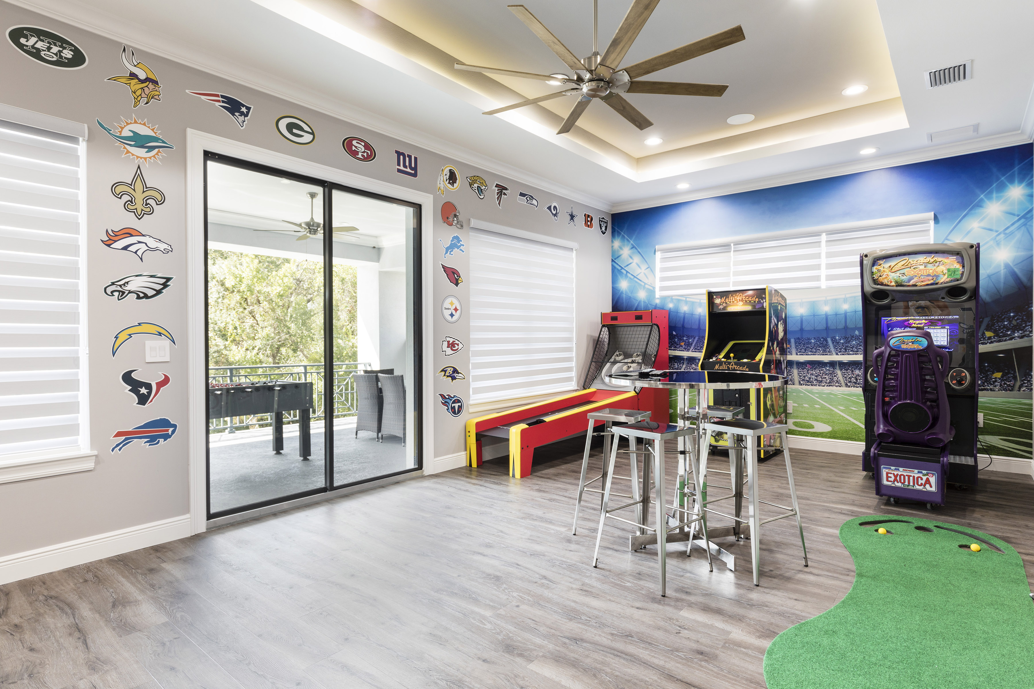 The games room provides endless entertainment with an air hockey table and skeeball as well as the playroom with 2 video game consoles! Don't forget about the 10 seat home theater where you and your family can watch your favorite movies at any time of the day!