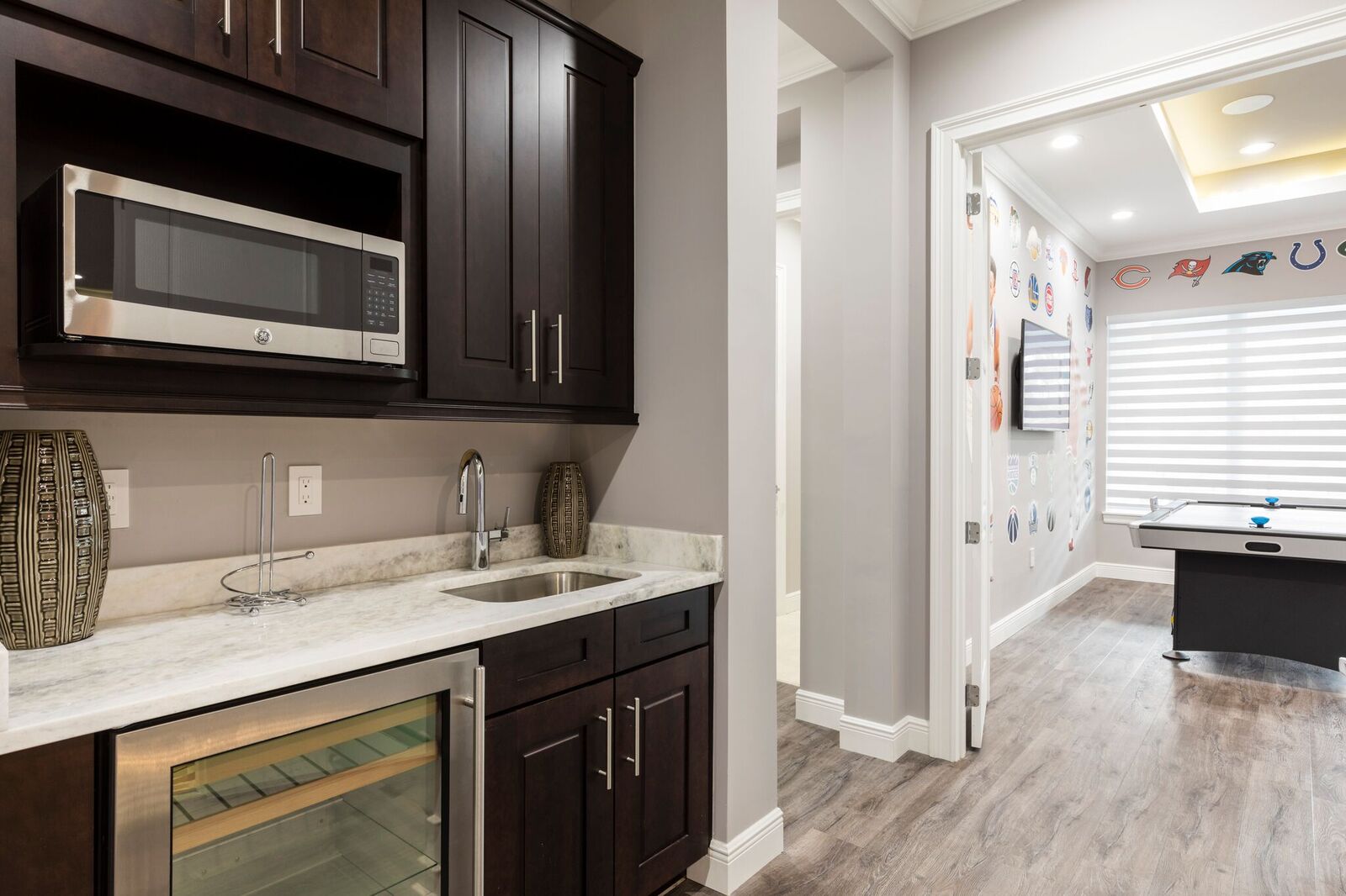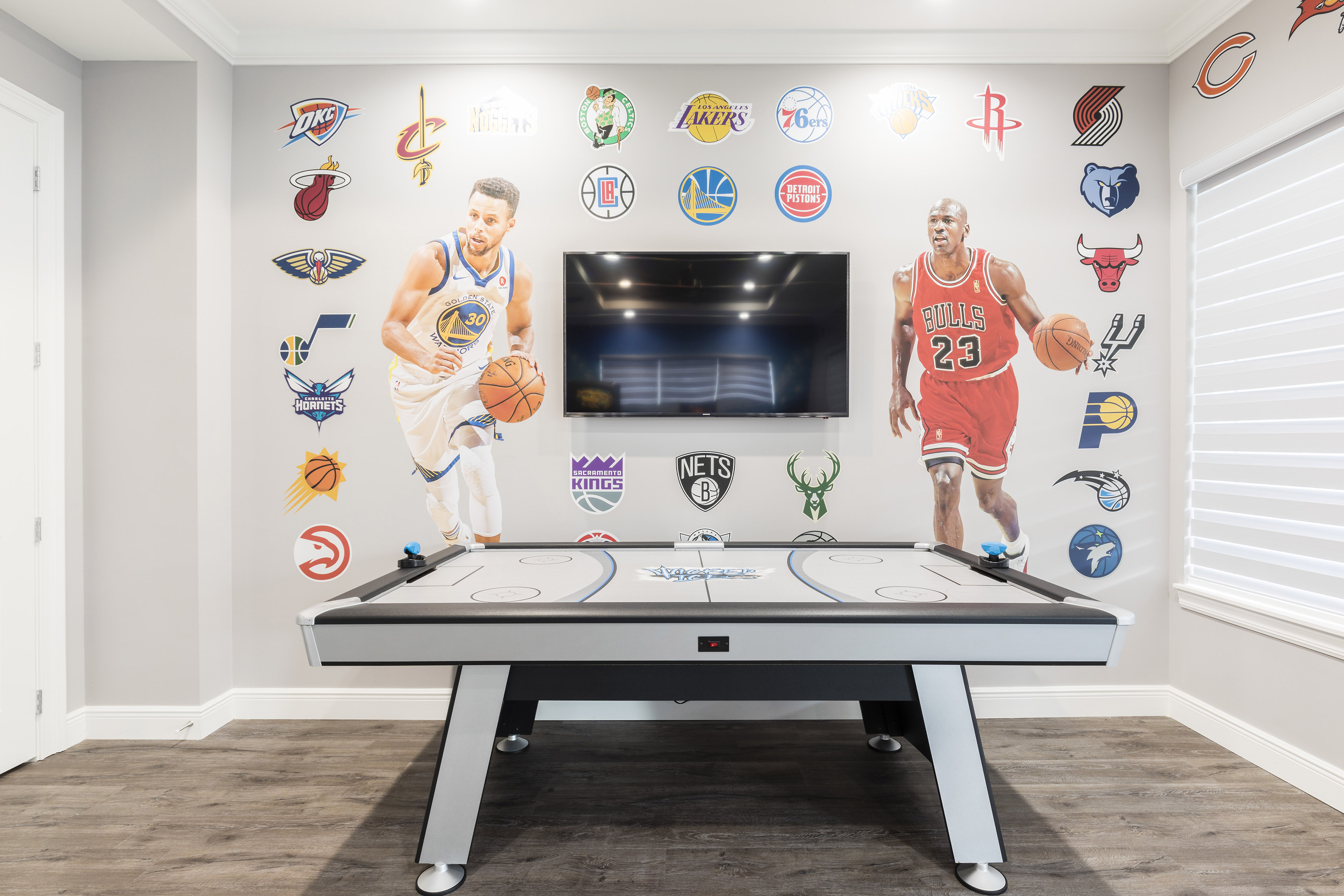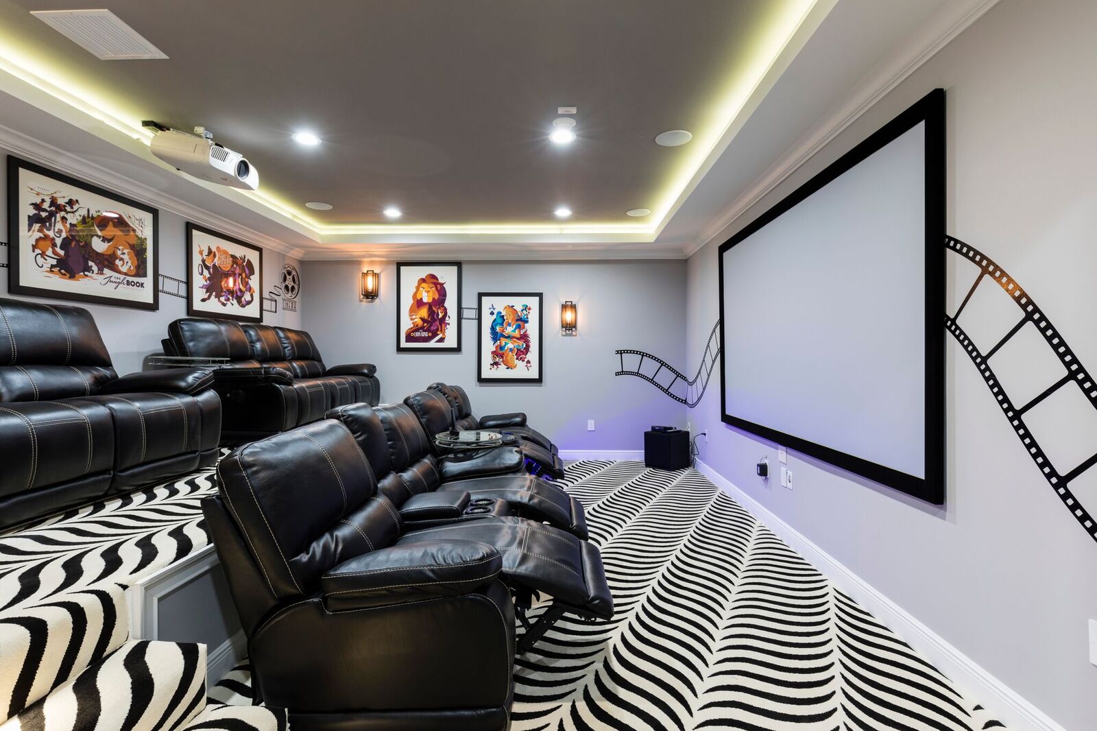 The games room provides endless entertainment with an air hockey table and skeeball as well as the playroom with 2 video game consoles! Don't forget about the 10 seat home theater where you and your family can watch your favorite movies at any time of the day!