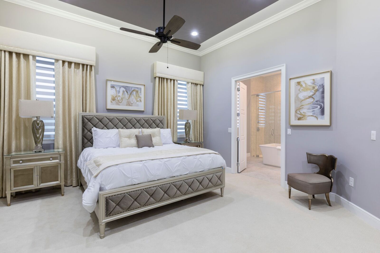 King sized Master with en suite (shower, tub, twin vanities) and an accent chair