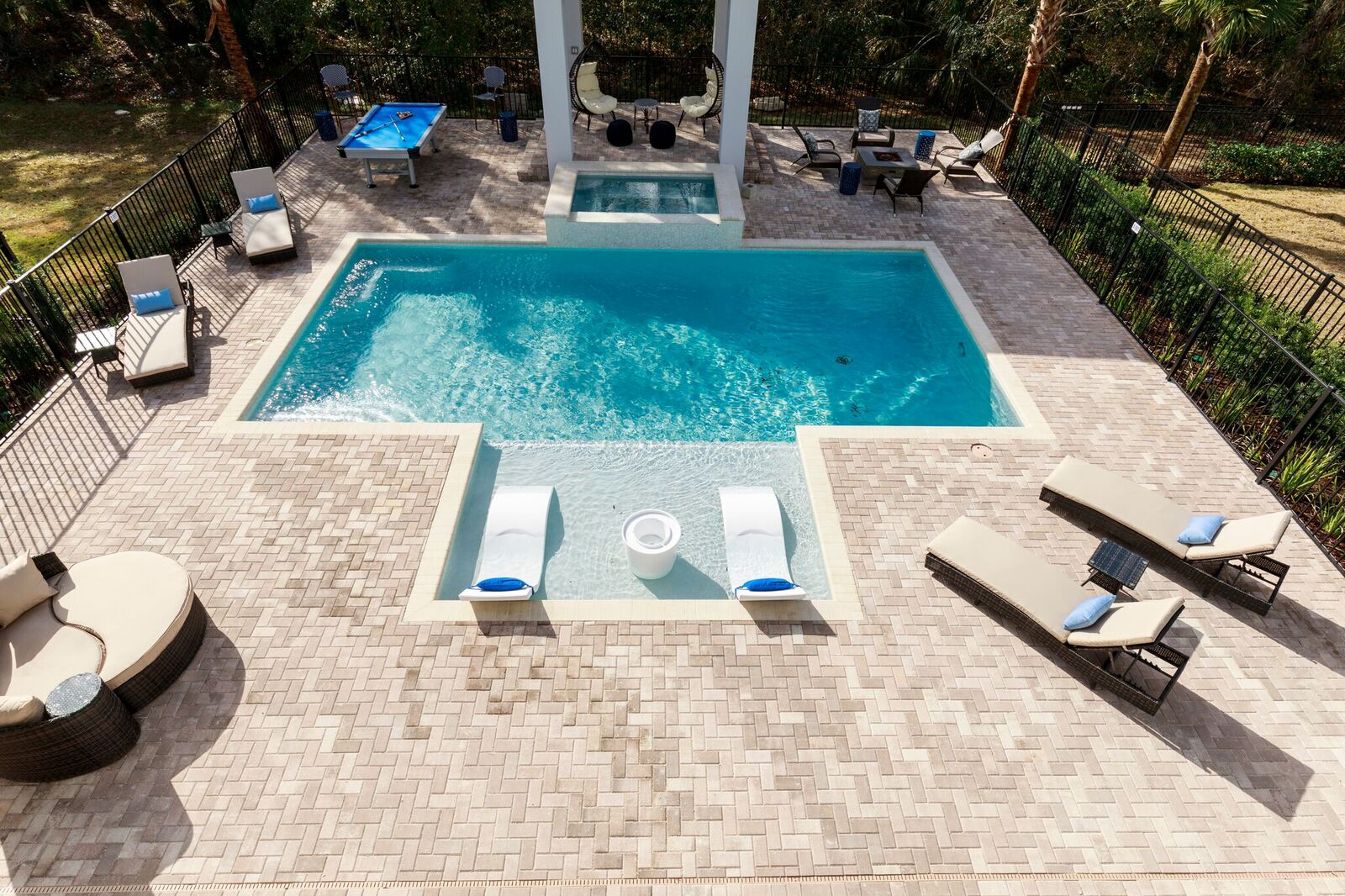 Right outside your patio doors, you can enjoy a private swimming pool and spa with sun loungers galore, a pool table, and a summer kitchen with grill for all your outdoor needs!