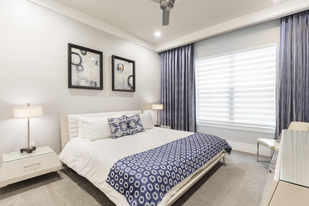 King sized master bedroom with en suite (walk in shower with rain head, free standing tub, two separate vanities, vanity make up mirror) with patio doors to the rear west facing balcony