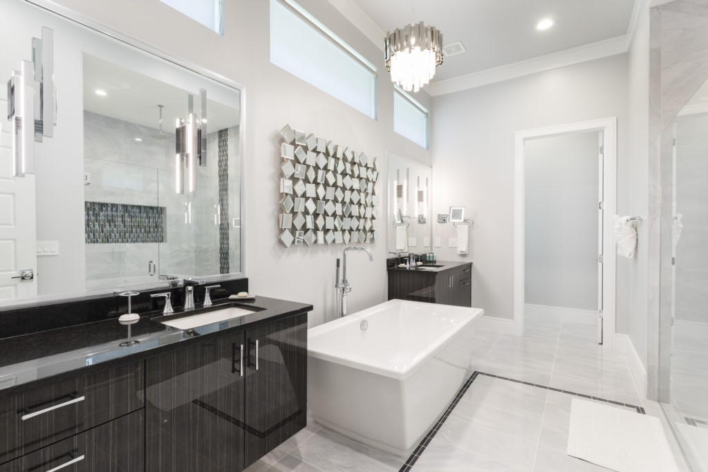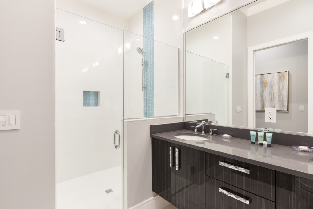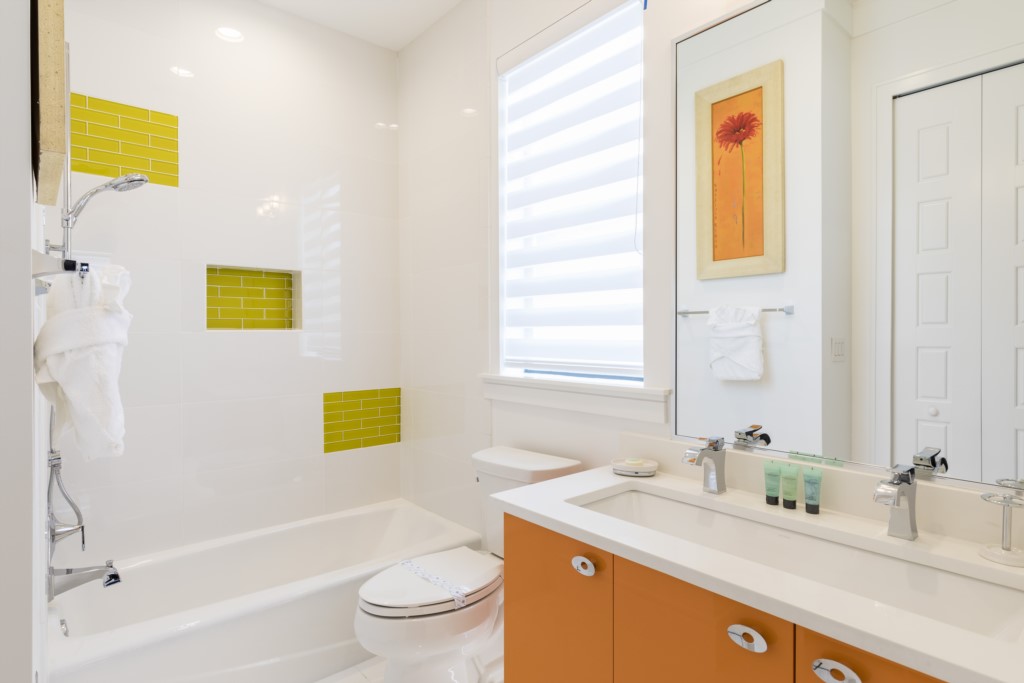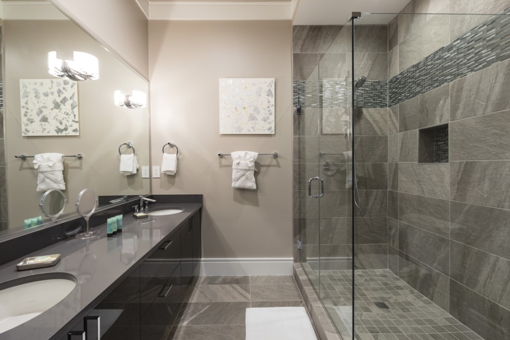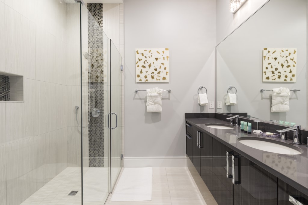 All bathrooms have floating cabinets with undercounter LED lighting to allow for soft night lighting