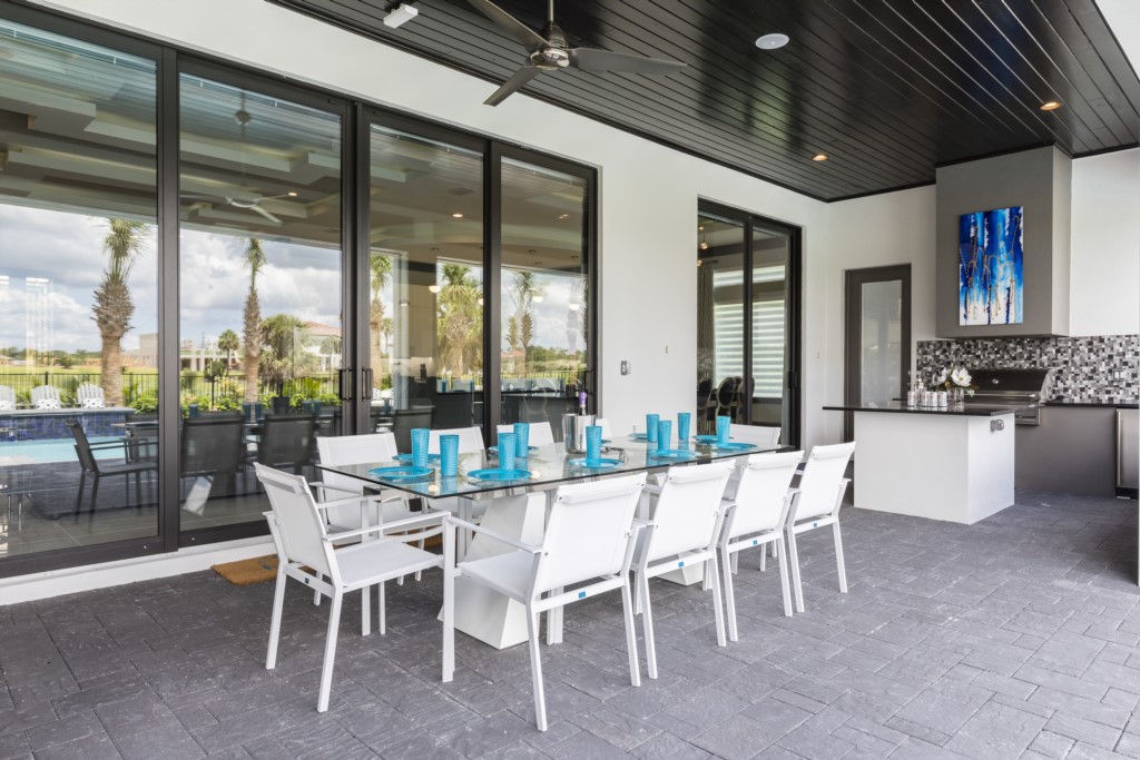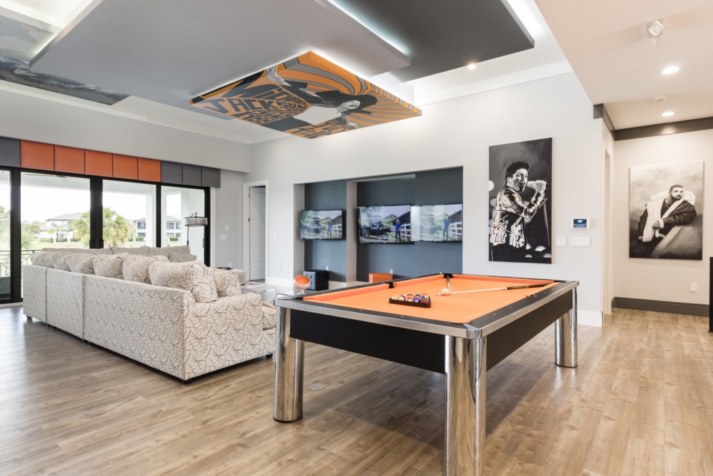 The home is designed to allow subtantial light through the home and is so beautifully finished and furnished by a Top Orlando interior designer with modern furnishings using only Caracole designer furniture. The kids will be kept entertained with the multiple games rooms and pool activities allowing the adults to enjoy their downtime.