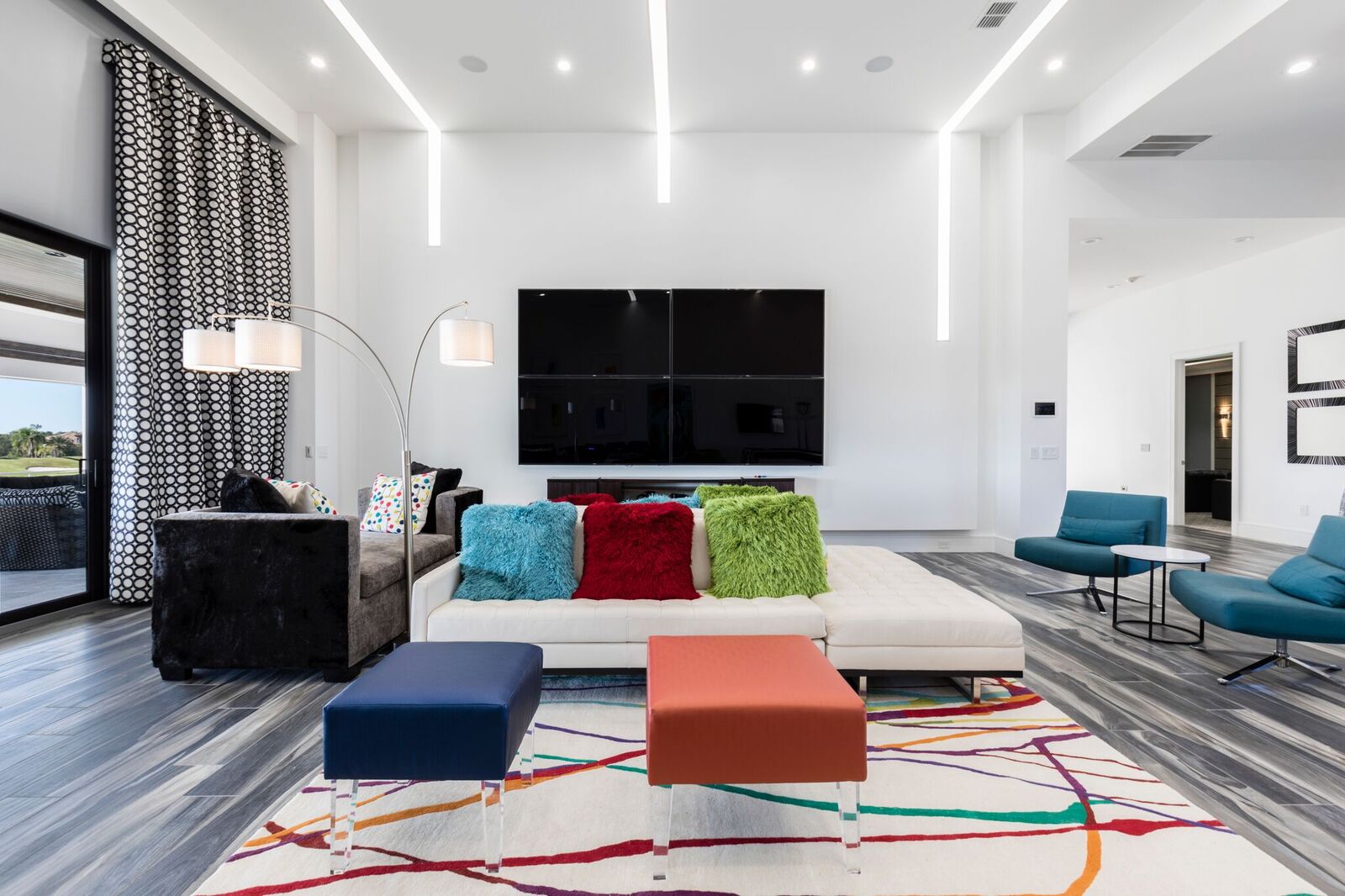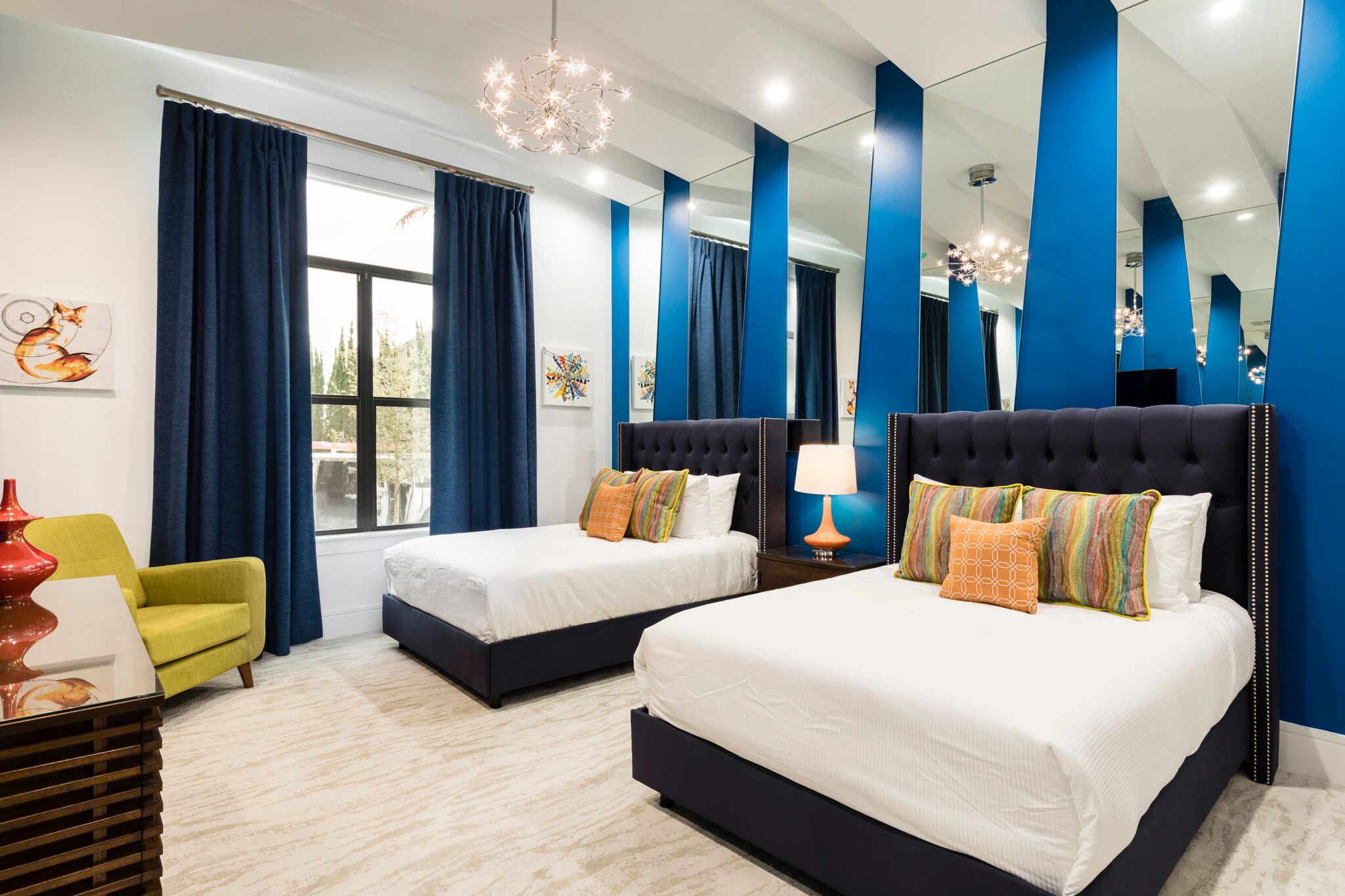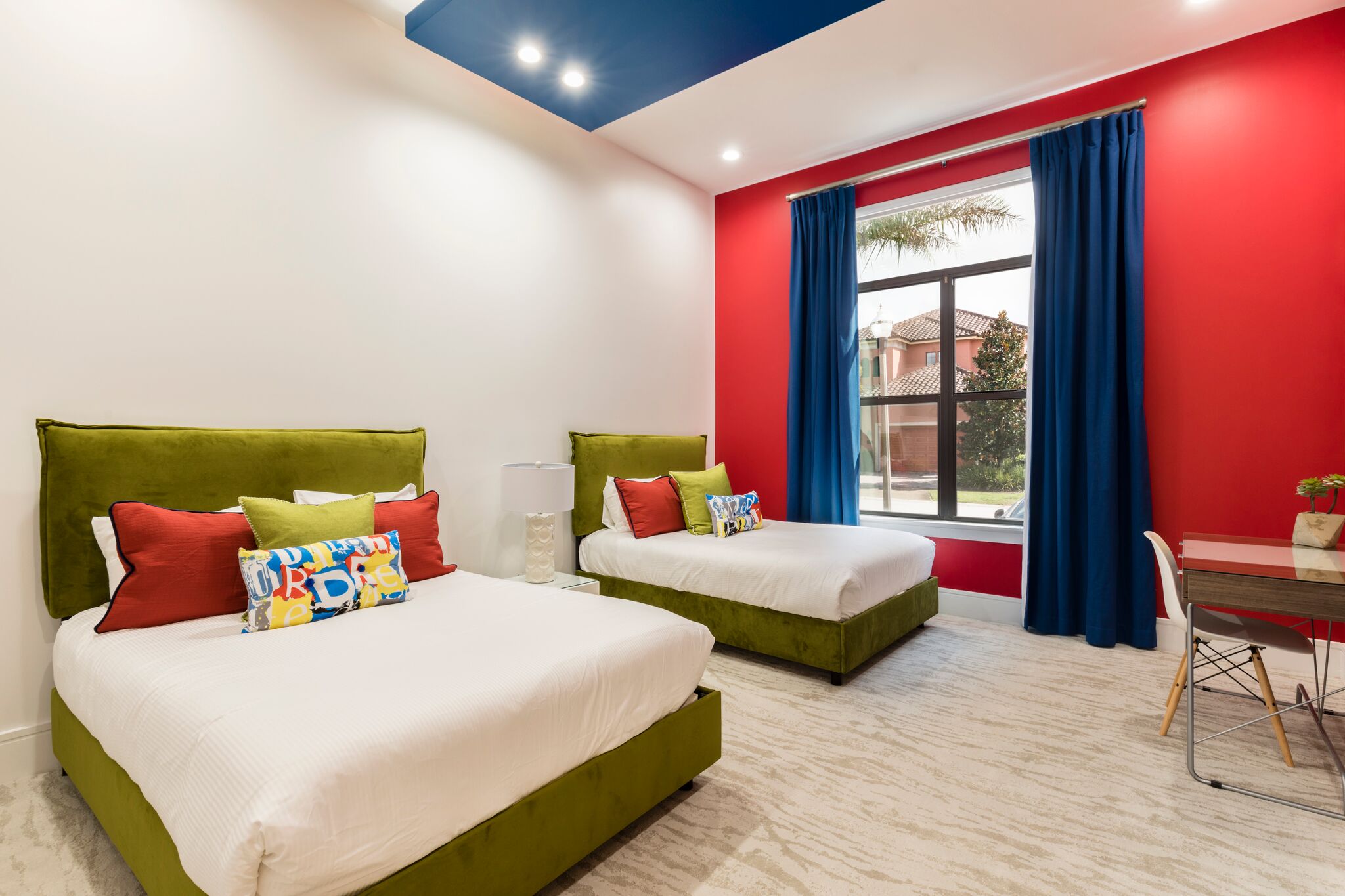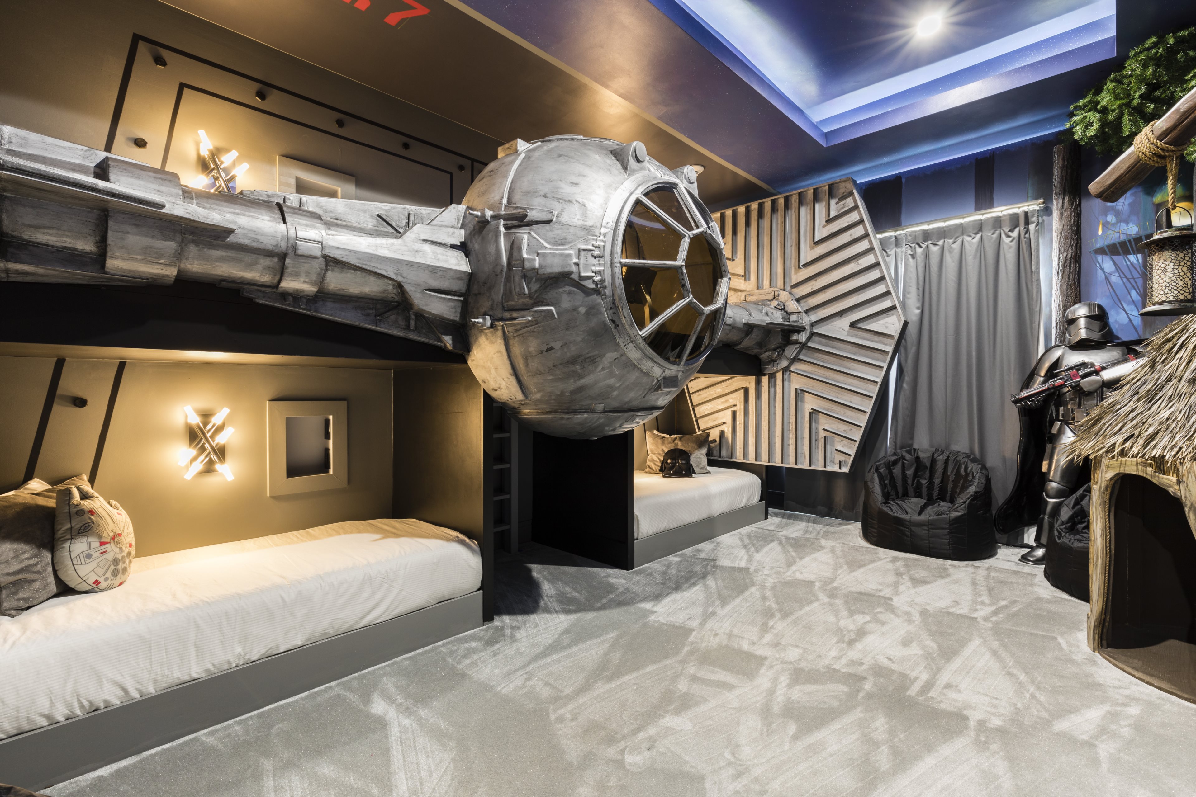 Be one of the first to enjoy over 13,000 sq.ft of modern open plan living where no expense has been spared in creating a completely unique and luxurious sanctuary for your family and guests to enjoy. This custom villa caters for adults and kids of all ages. The younger guests will become totally immersed in the ‘Star Wars’, ‘Princesses’ and ‘Nemo’ themed rooms. For the teens there is a cinema, arcade and a separate gathering room with both Xbox One and PS4 game stations. Adults can work out in the gym or simply relax in one of the 3 bars where you’ll find a magnificent games room featuring the only 4 TV video wall in whole of the Reunion Resort!