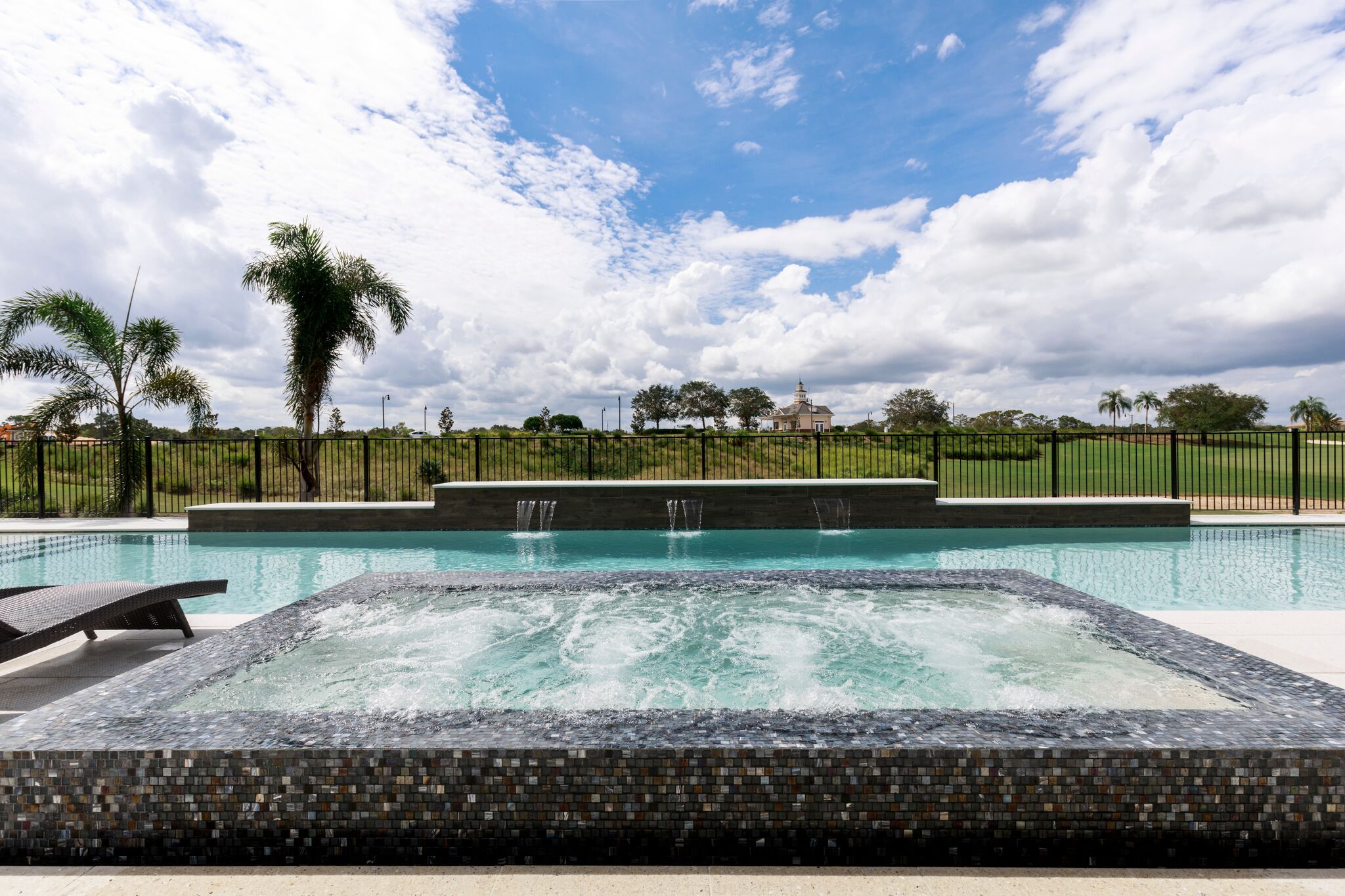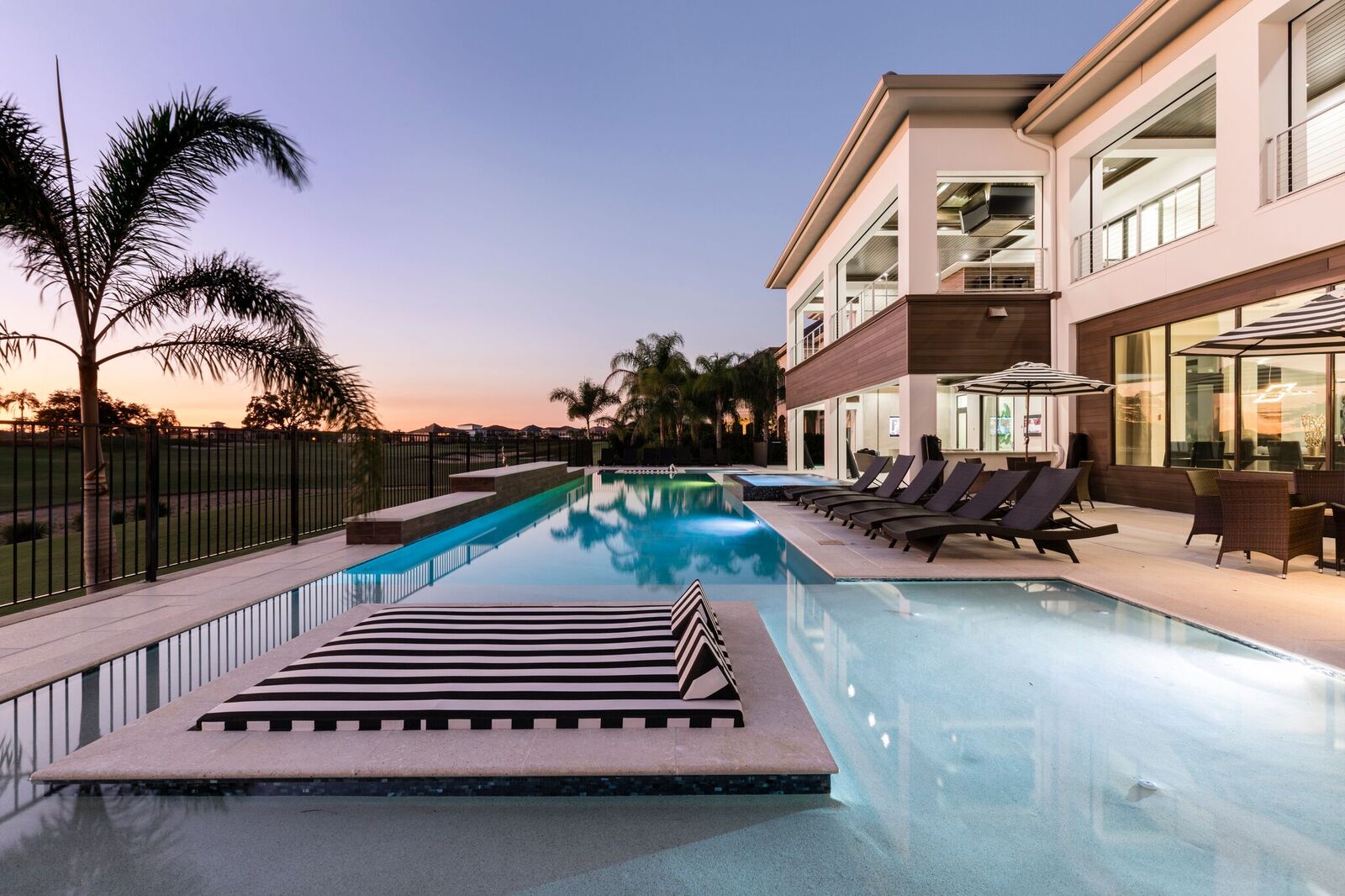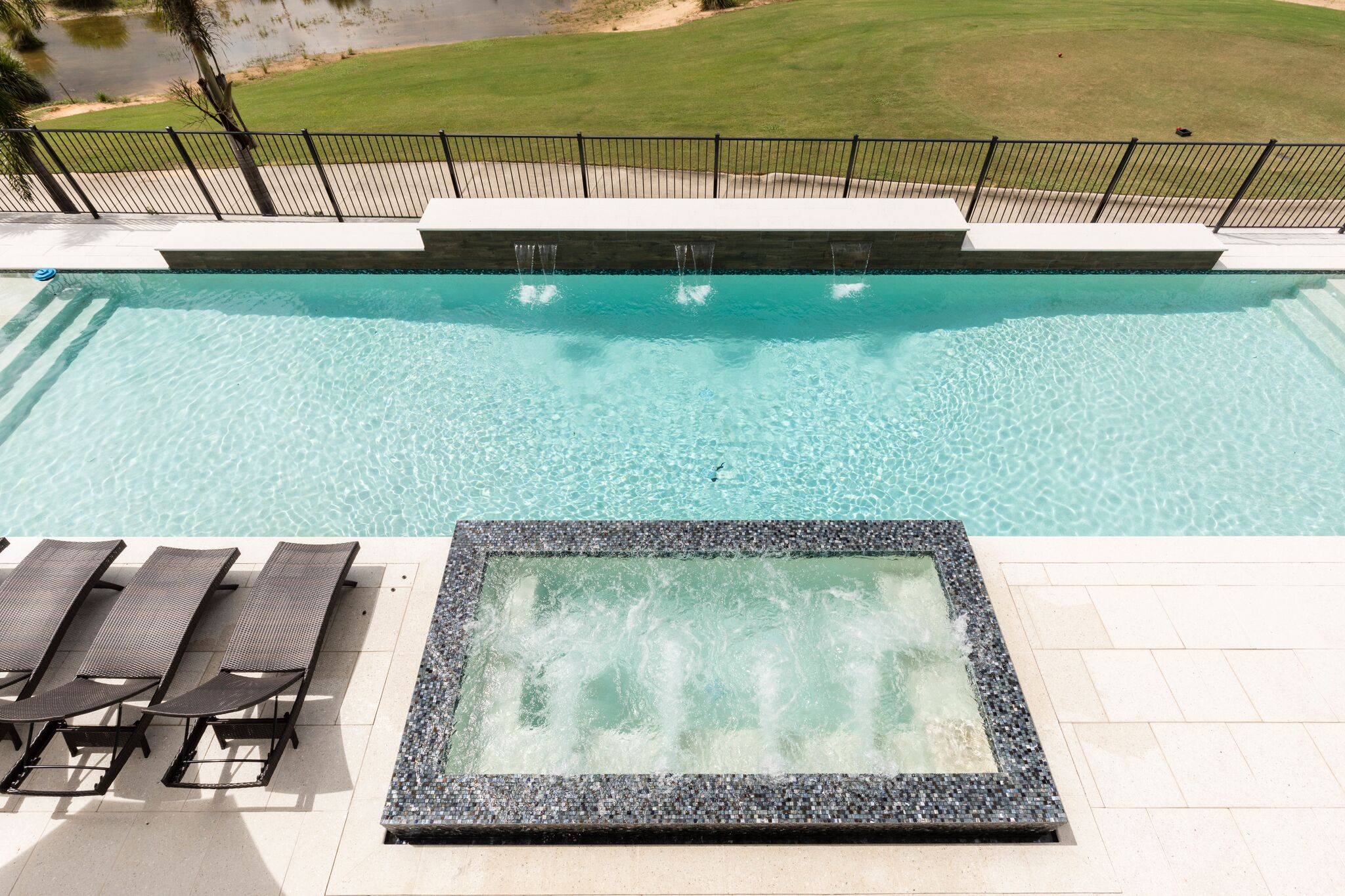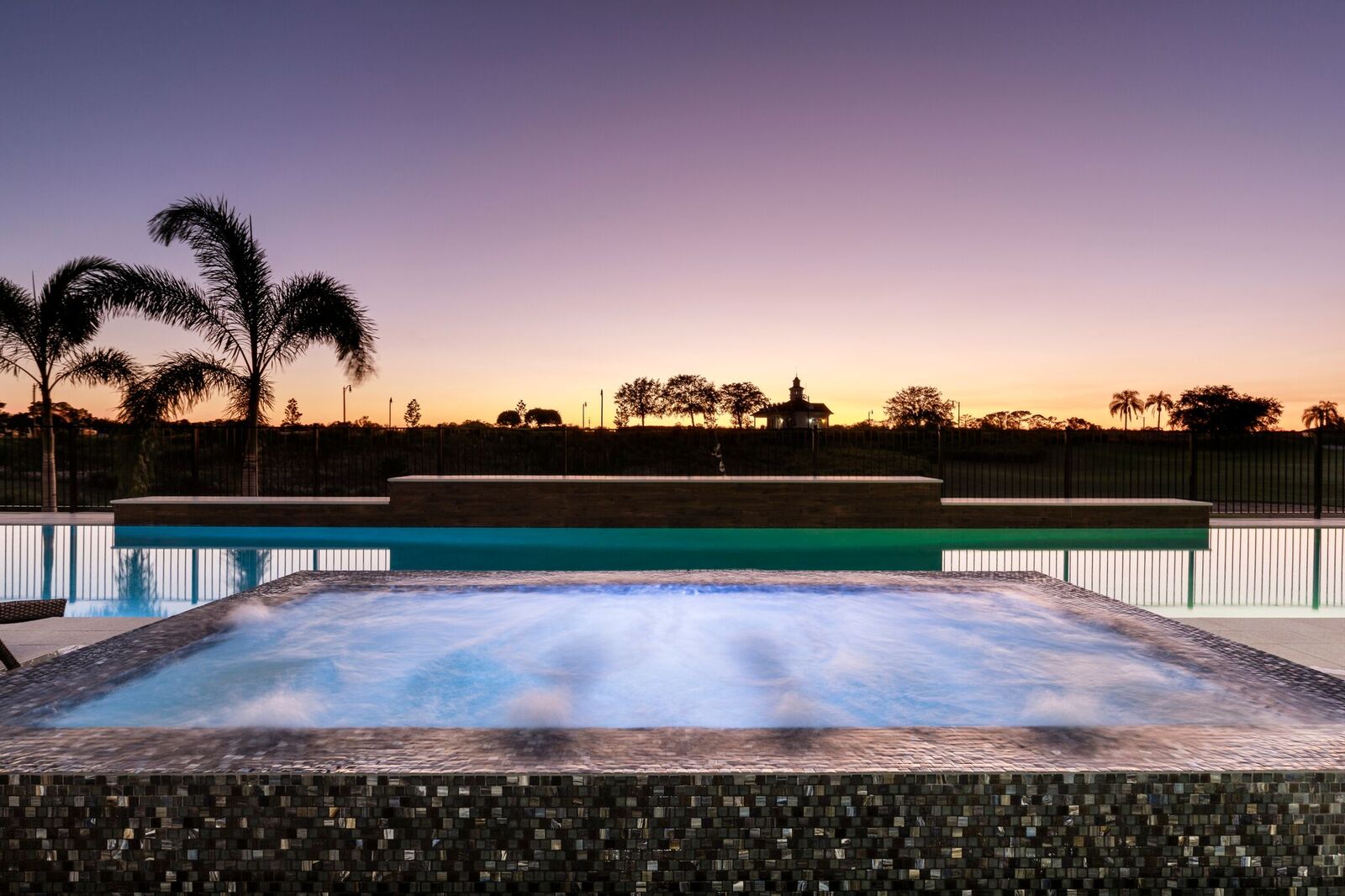 West facing over sized private swimming pool/Jacuzzi with golf views