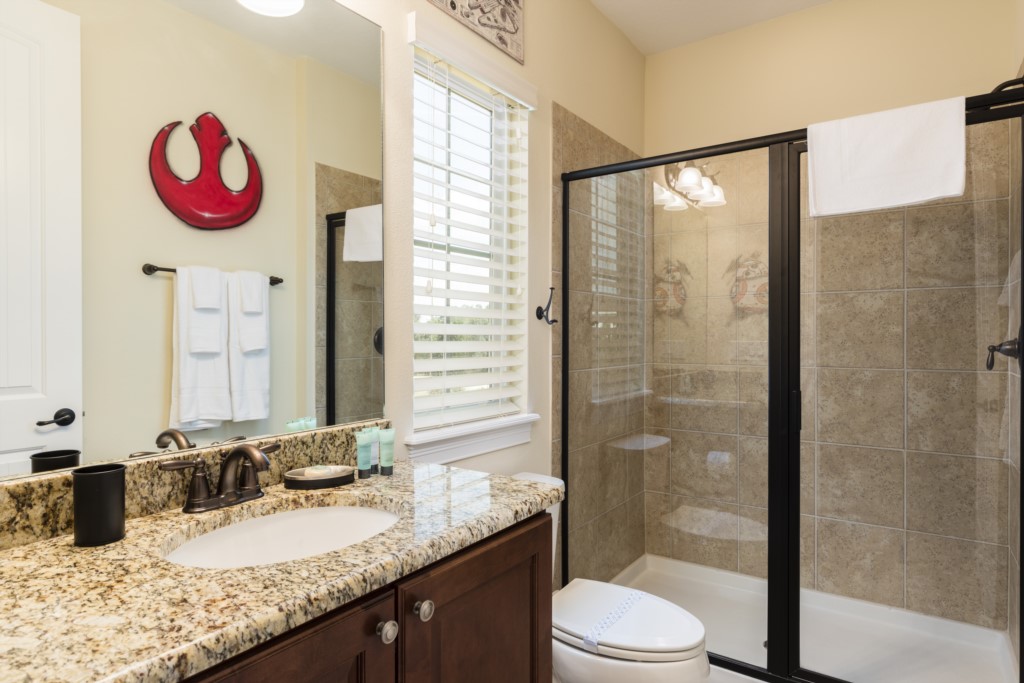 'Star Wars' themed bedroom with bunk beds (Twin and Full sized bed) and an en suite (shower)