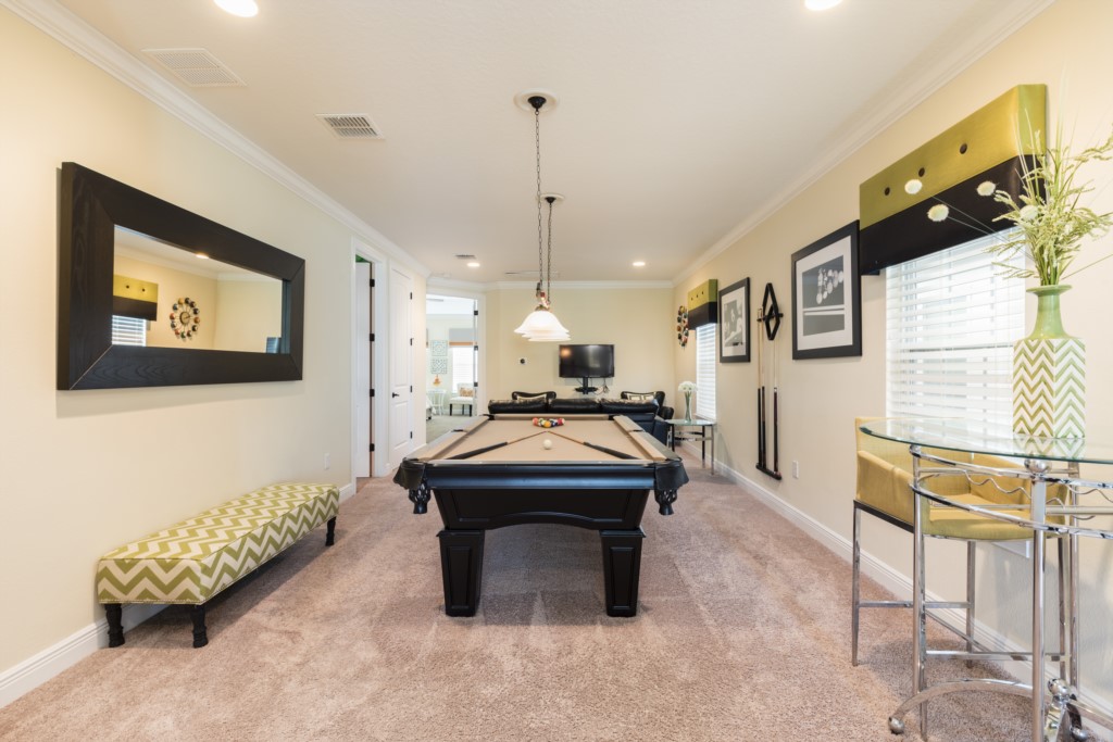 The upper floor entertainment loft area provides hours of fun for the whole family with a pool table and large flat screen TV with comfortable seating.