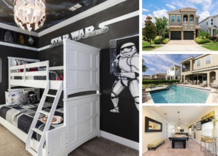 This 5 bedroom pool villa is located in Reunion Resort, which backs onto a PGA golf course and is only about 12 minutes away from Walt Disney World!