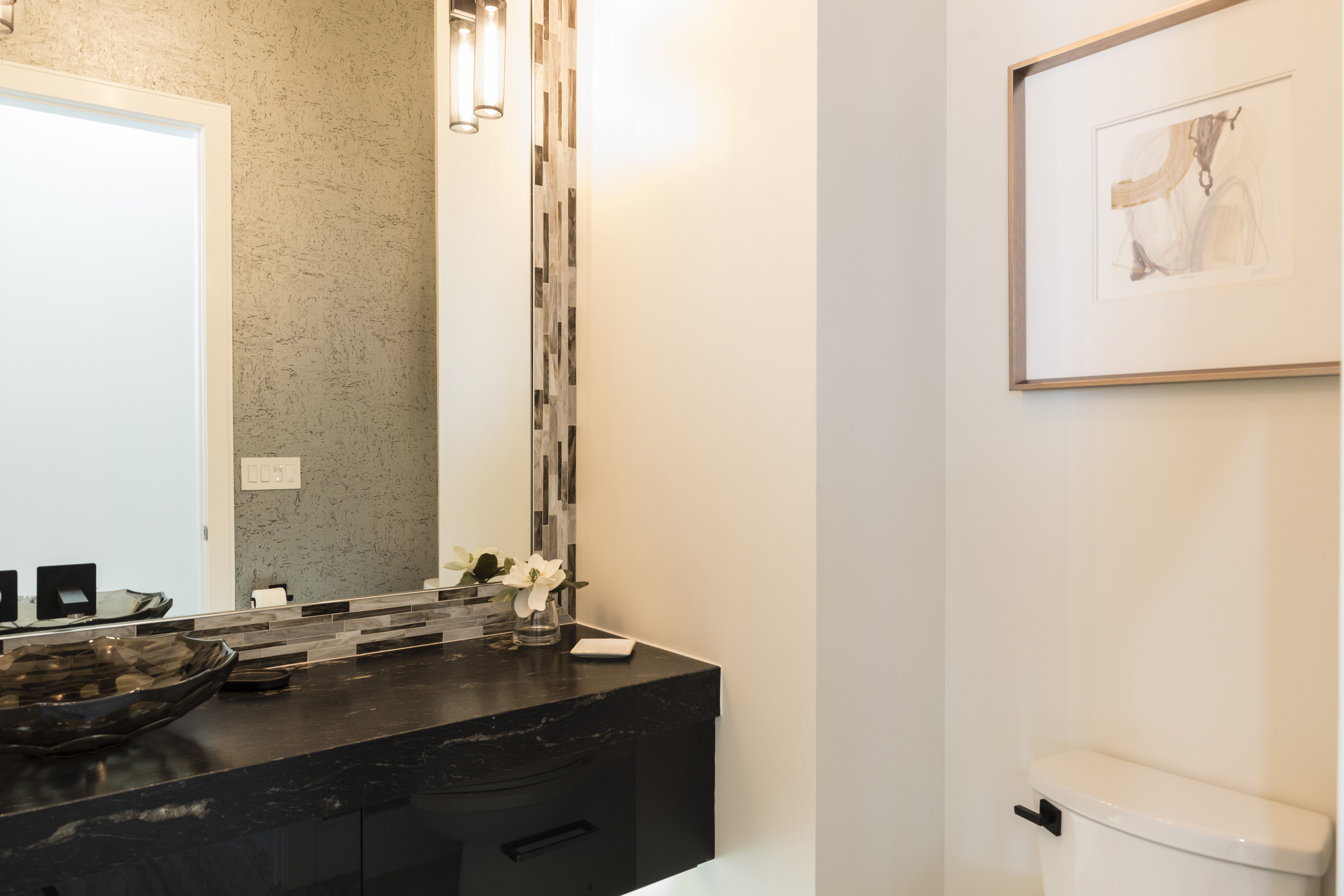 King sized Master with en suite (shower with 2x heads, 2x separate vanities, tub), 2x accent chairs, patio access
