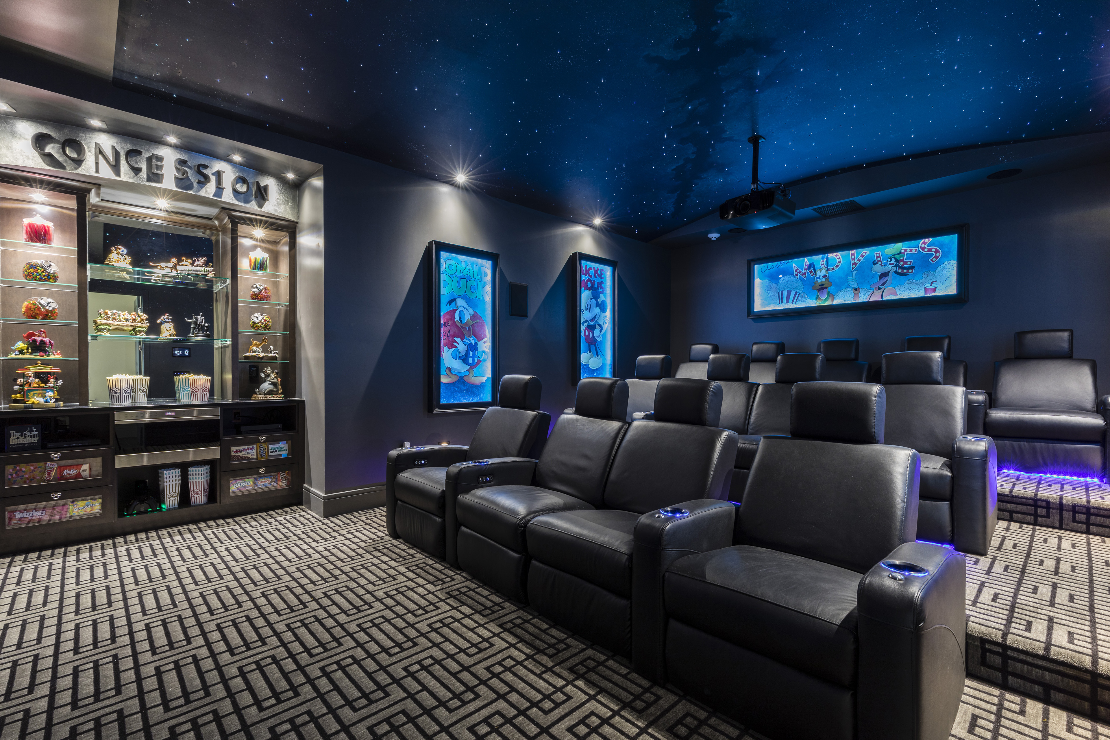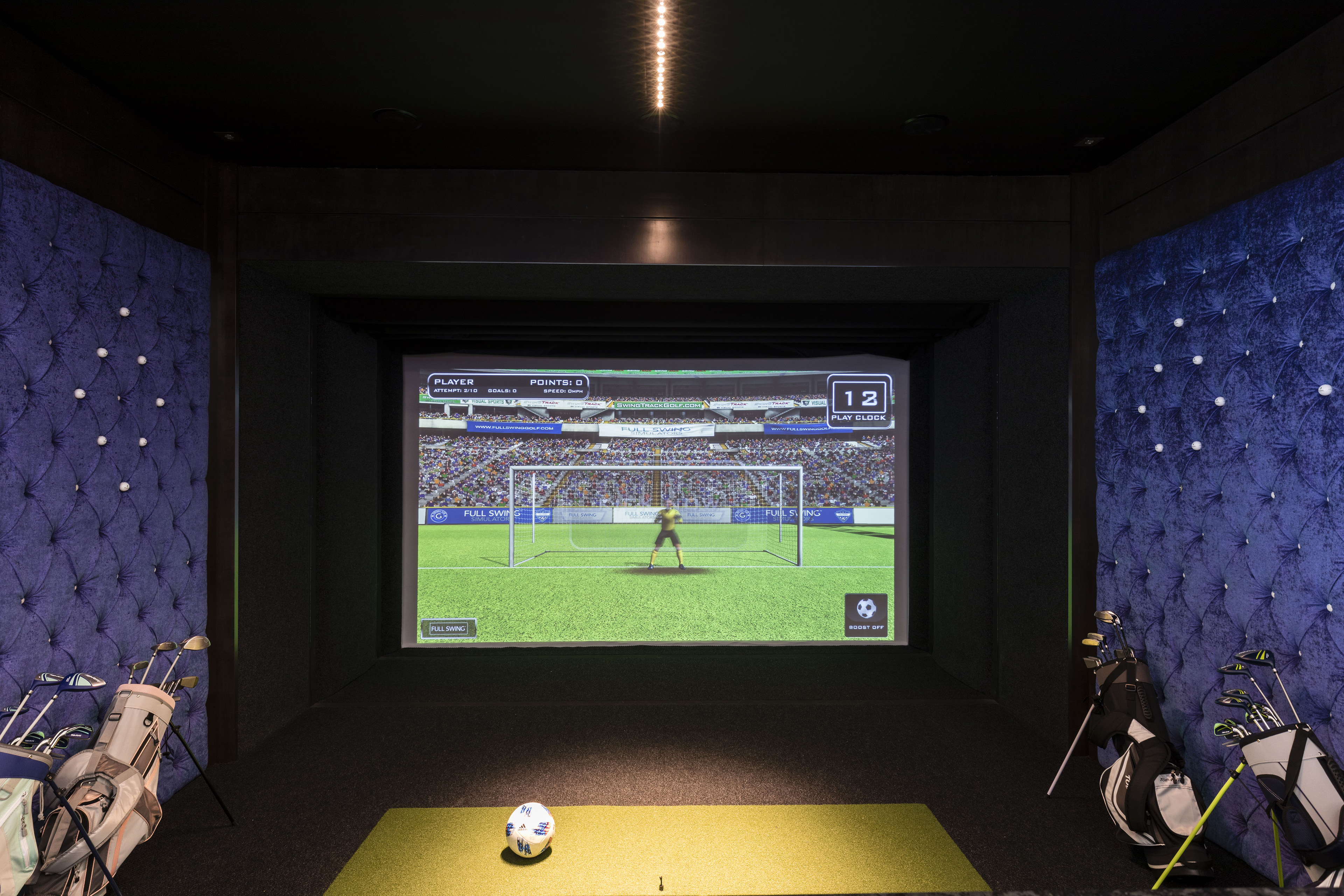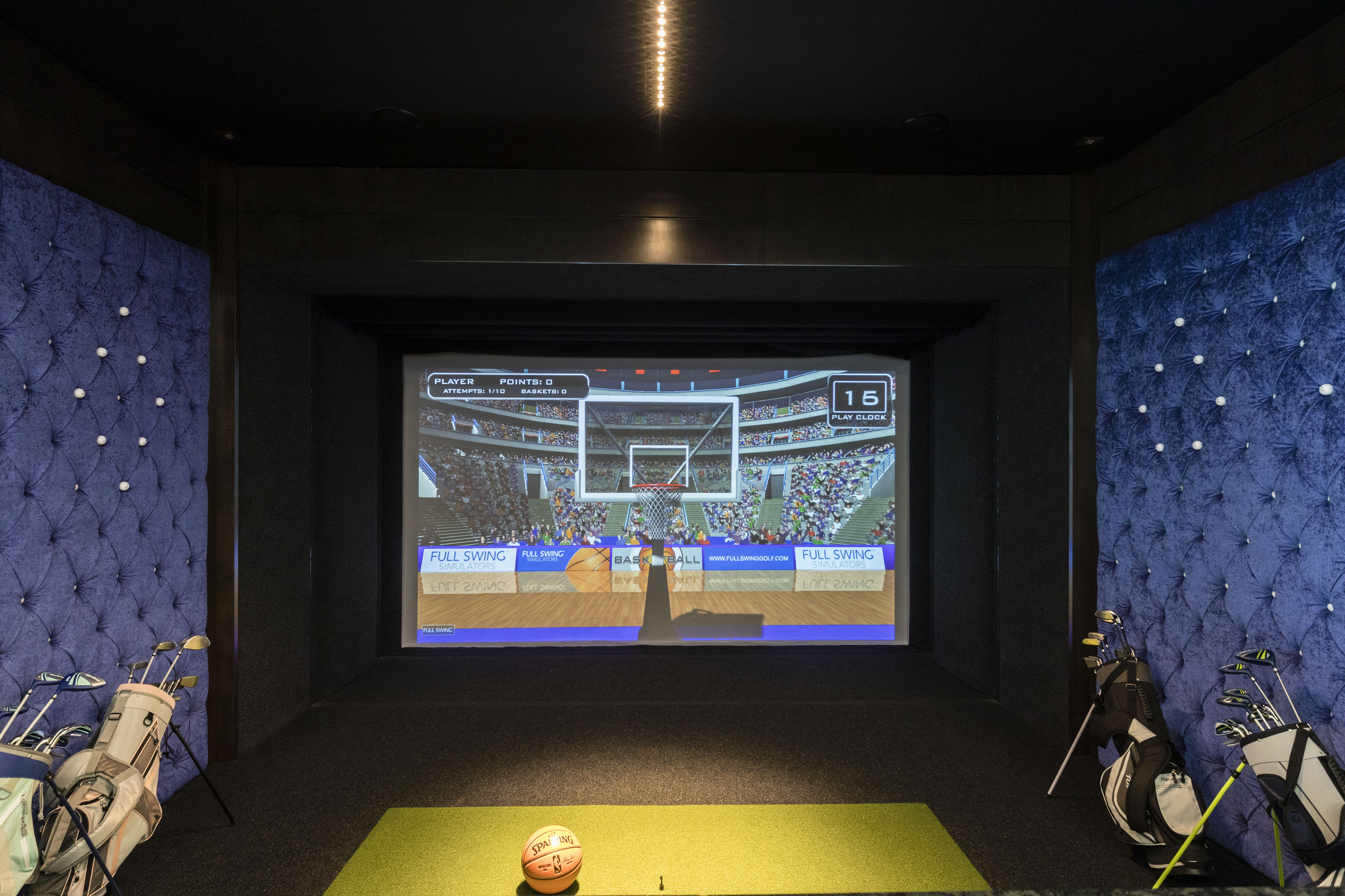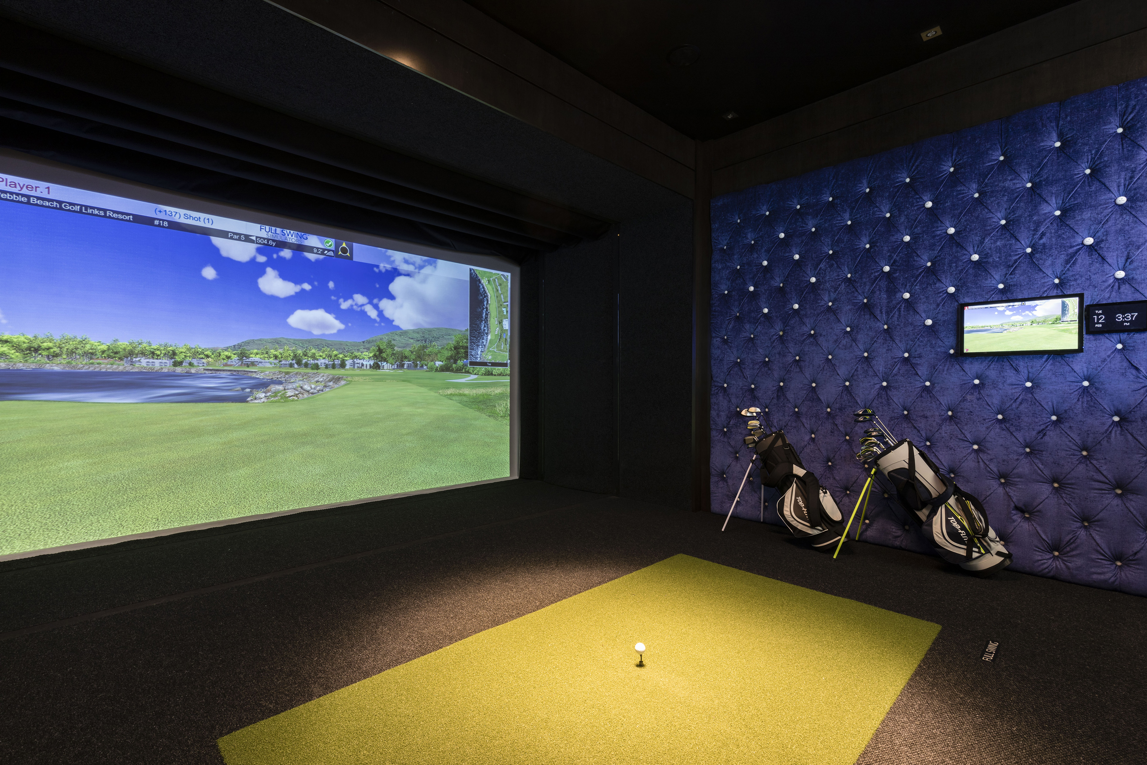 This home offers an indoor and outdoor home theater, a golf simulator, putting green, games room with a ping pong, foosball, and pool table, a home gym, and a kid's secret play room!