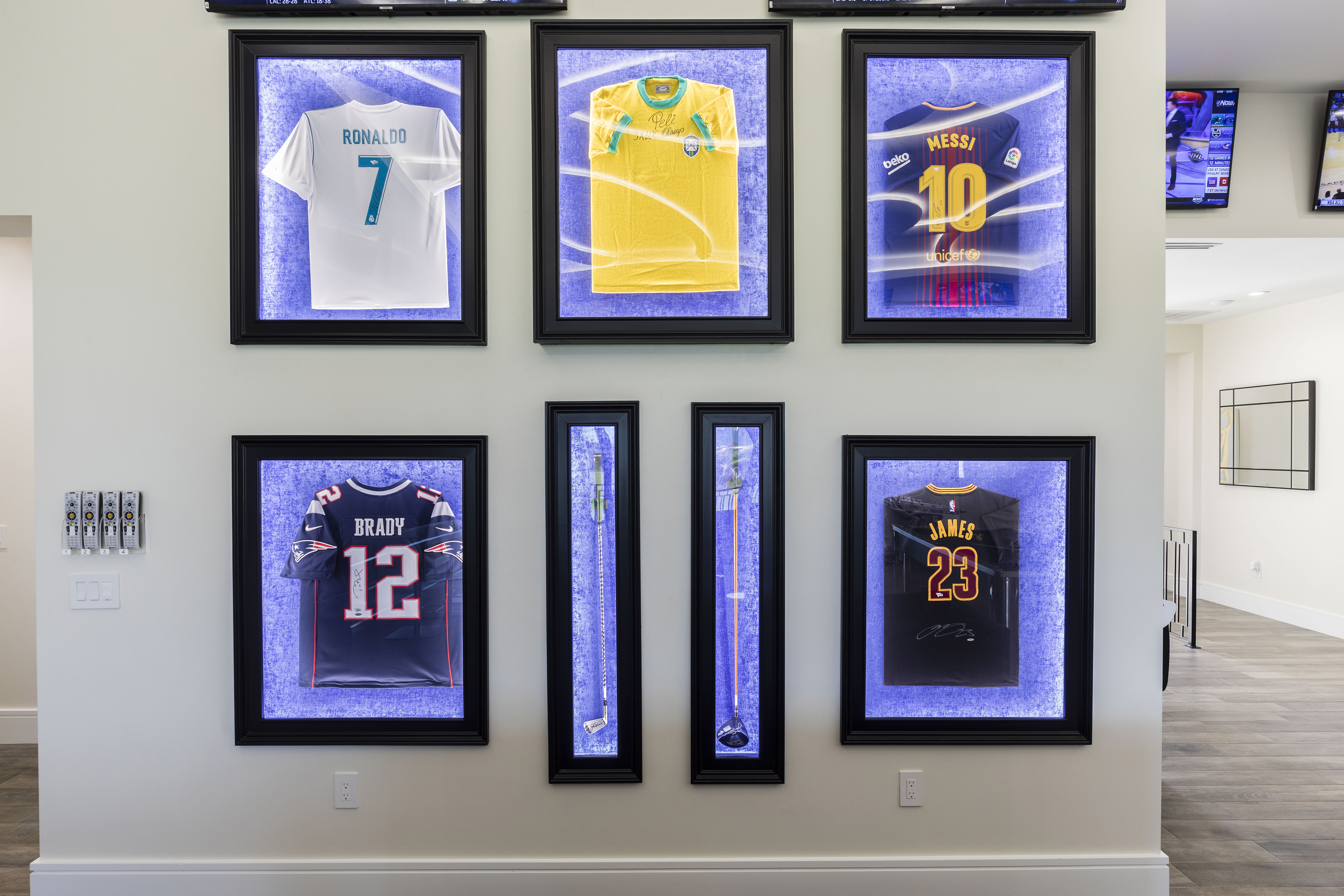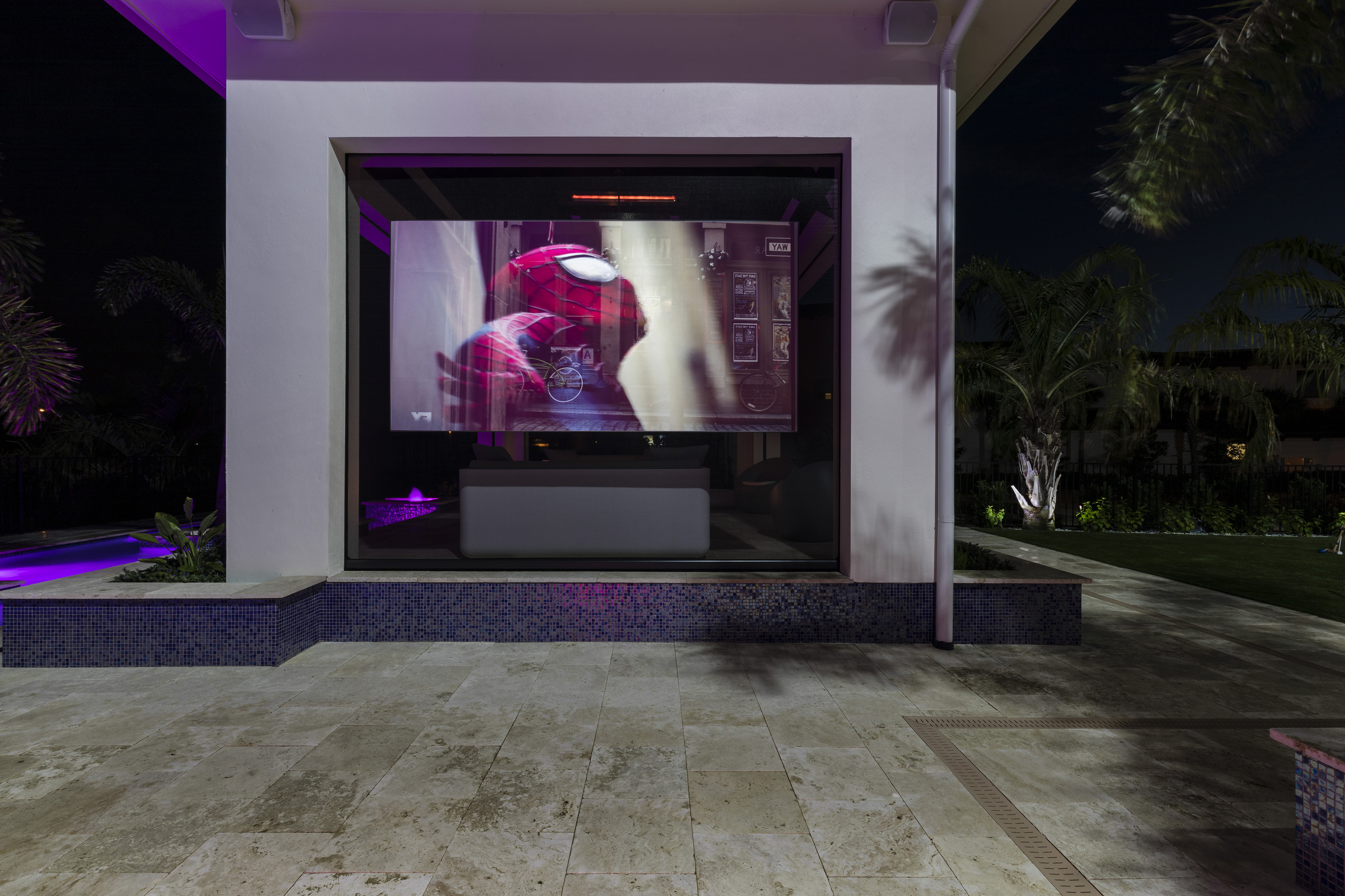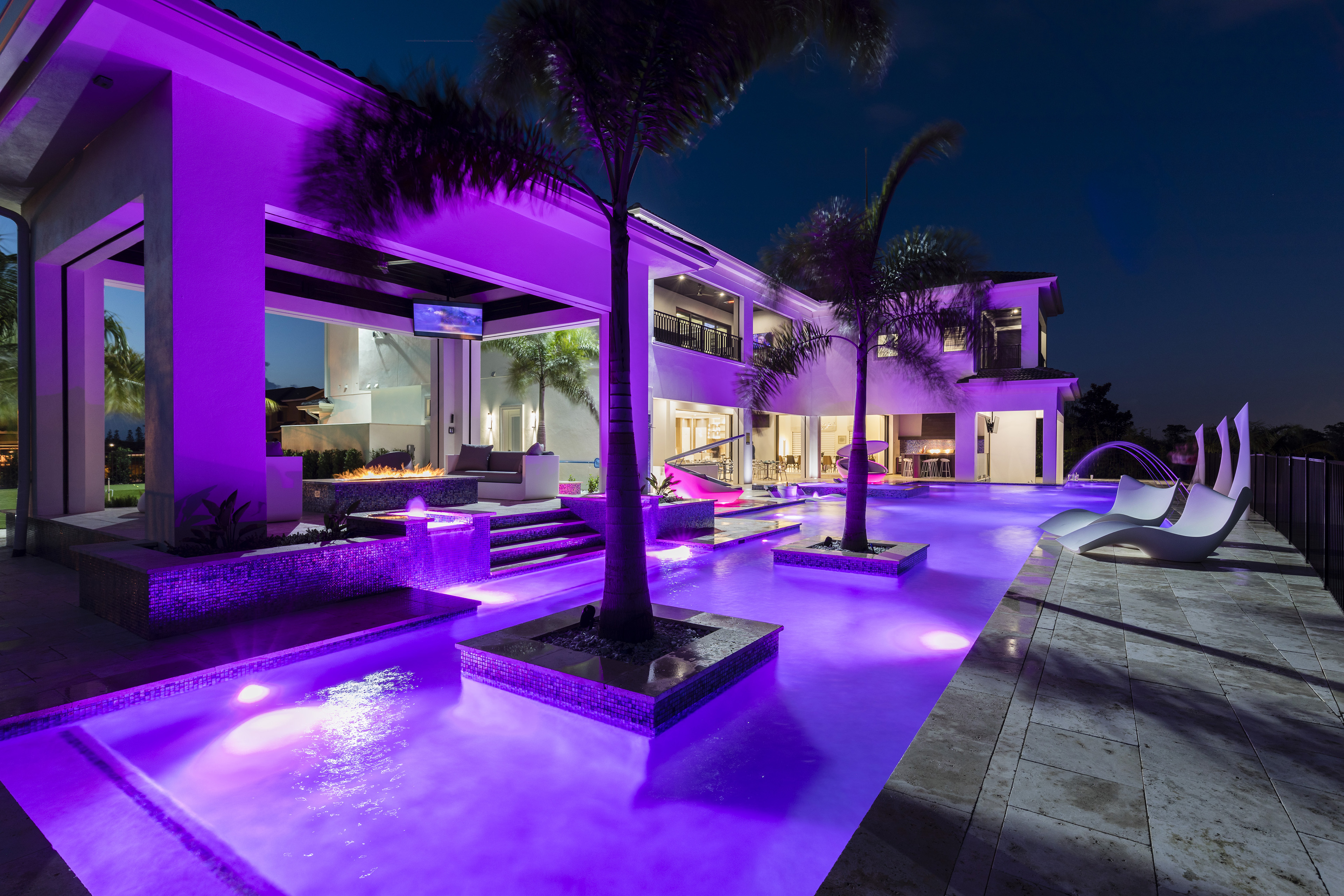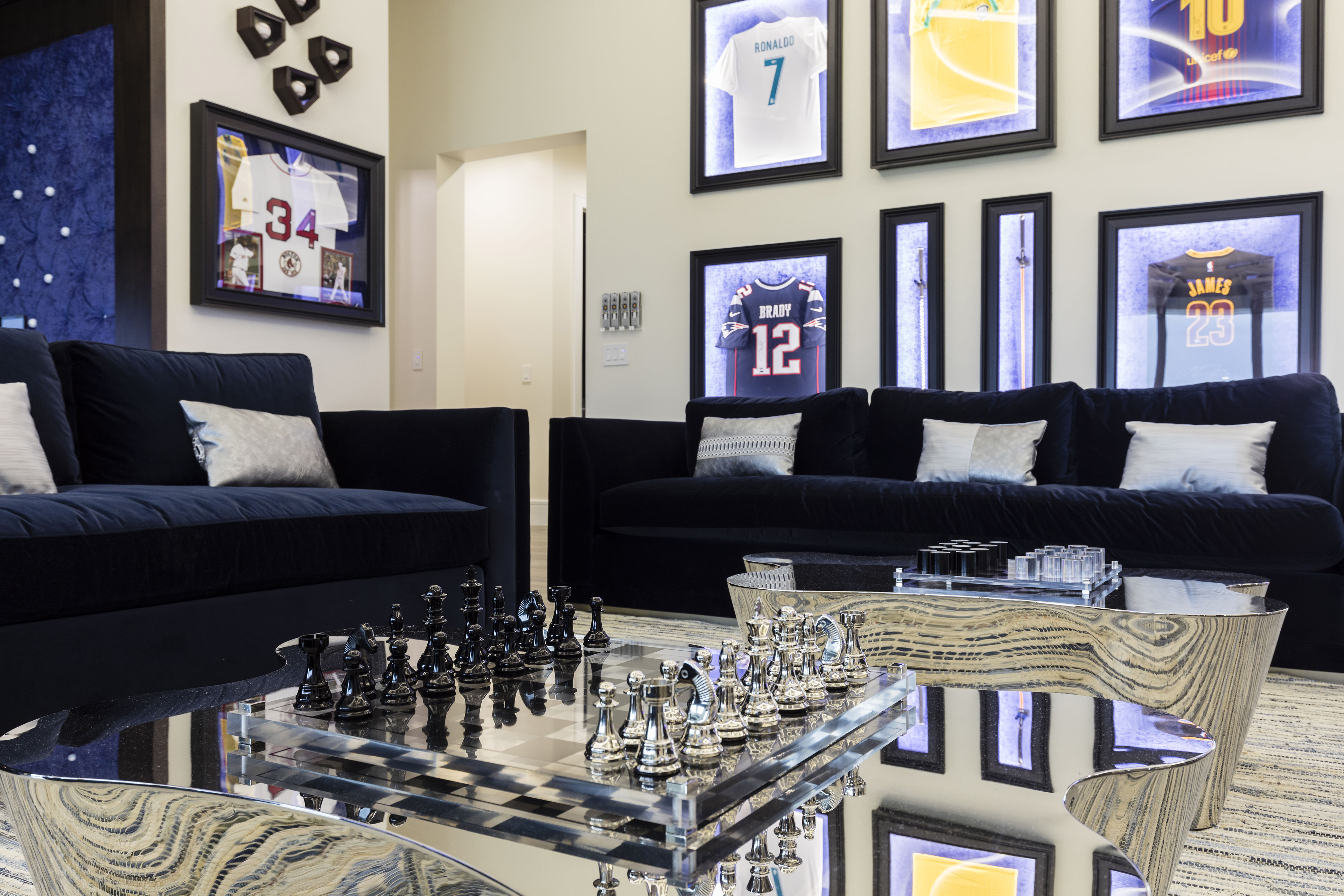This home offers an indoor and outdoor home theater, a golf simulator, putting green, games room with a ping pong, foosball, and pool table, a home gym, and a kid's secret play room!