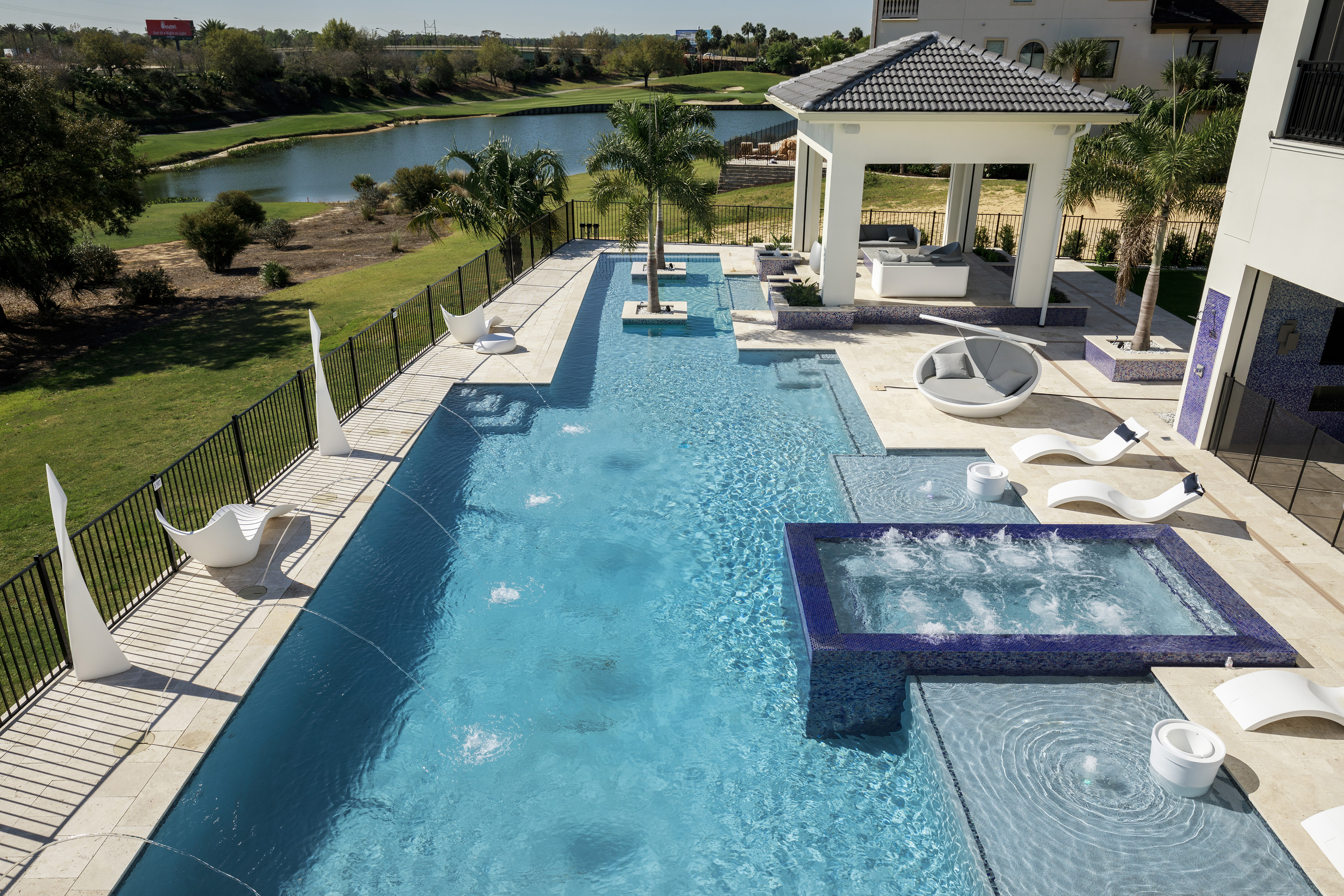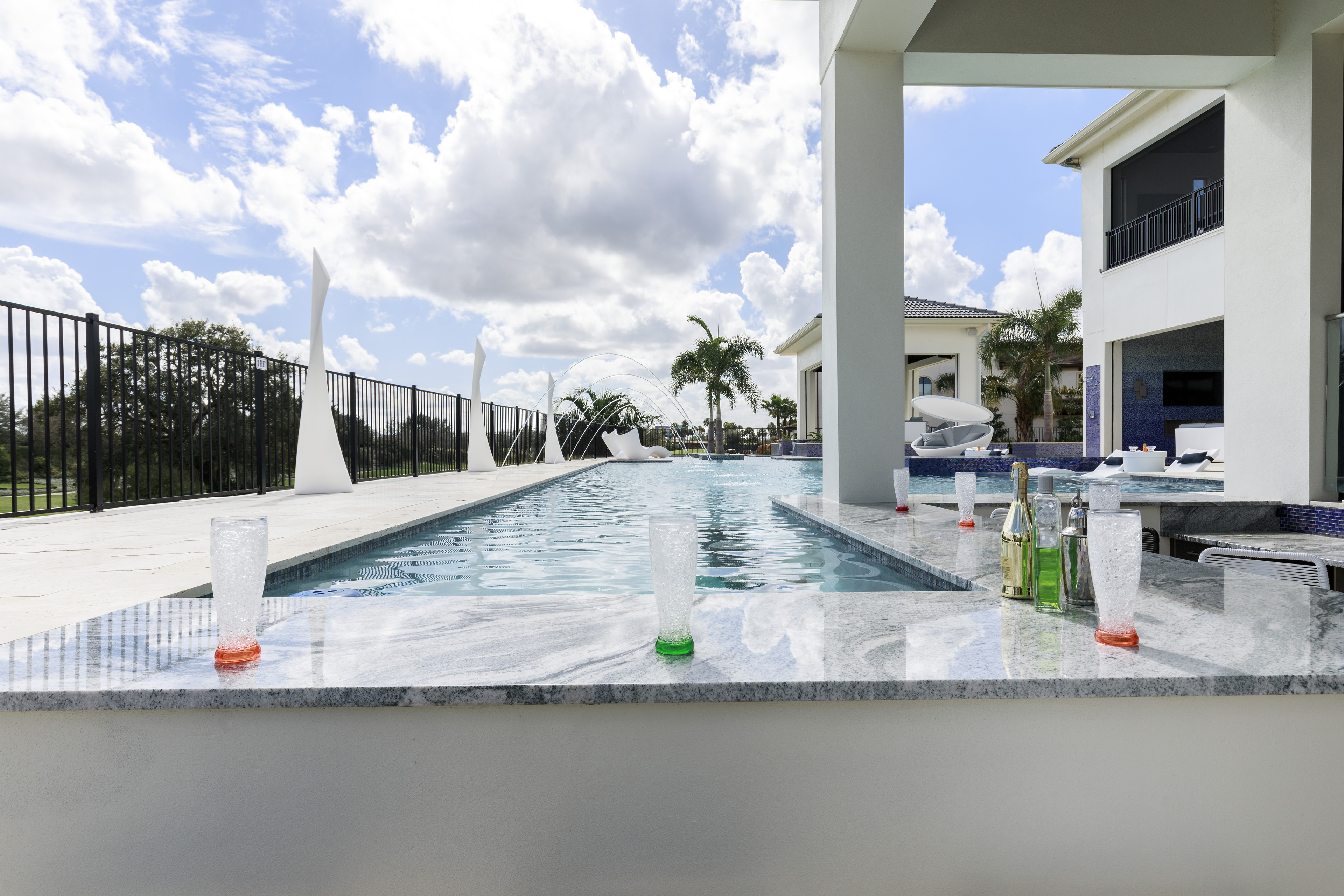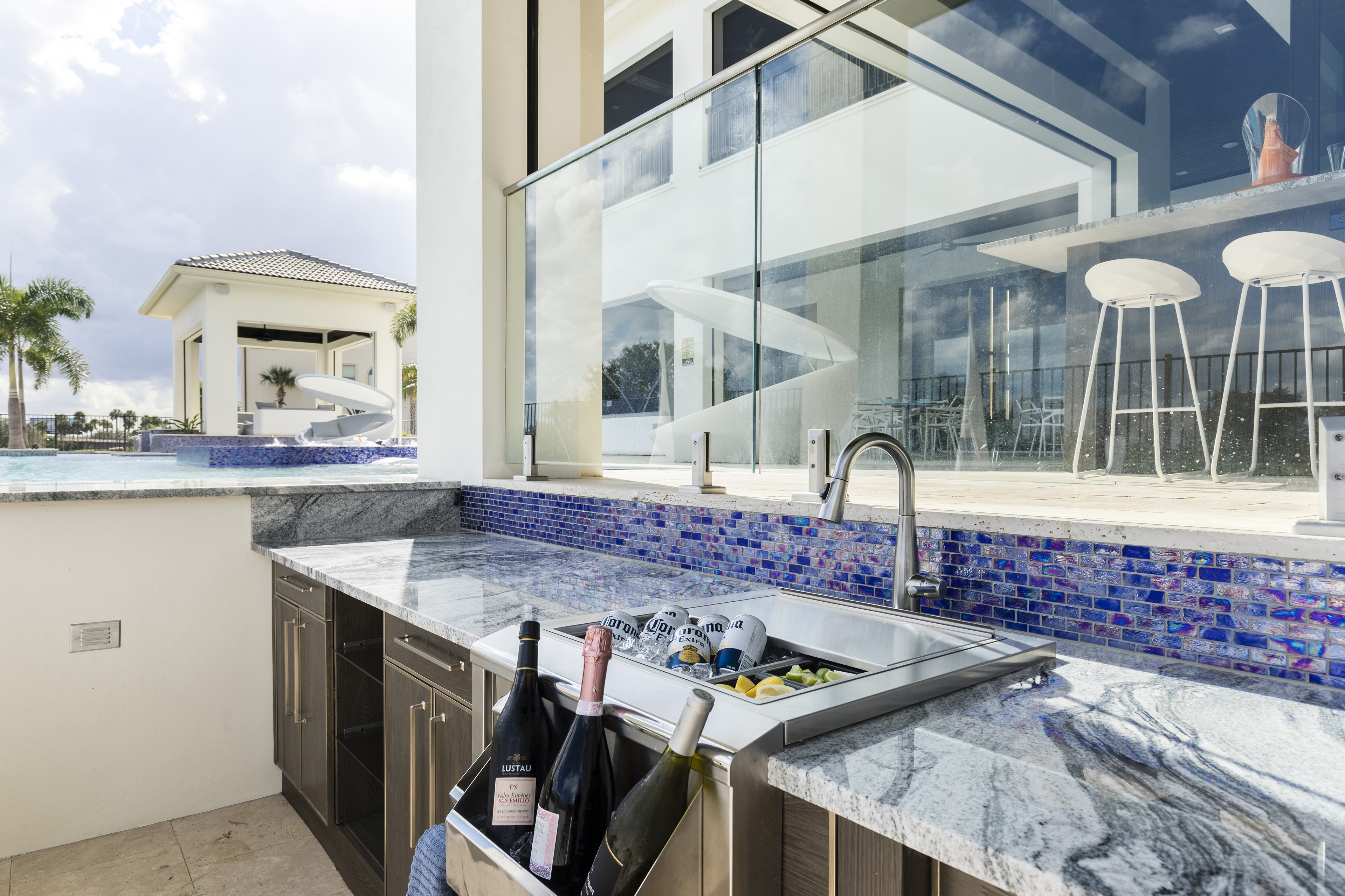 Right outside your patio doors, you can also enjoy a private swimming pool with swim up bar and infinity spa with a summer kitchen and grill for all your outdoor needs!