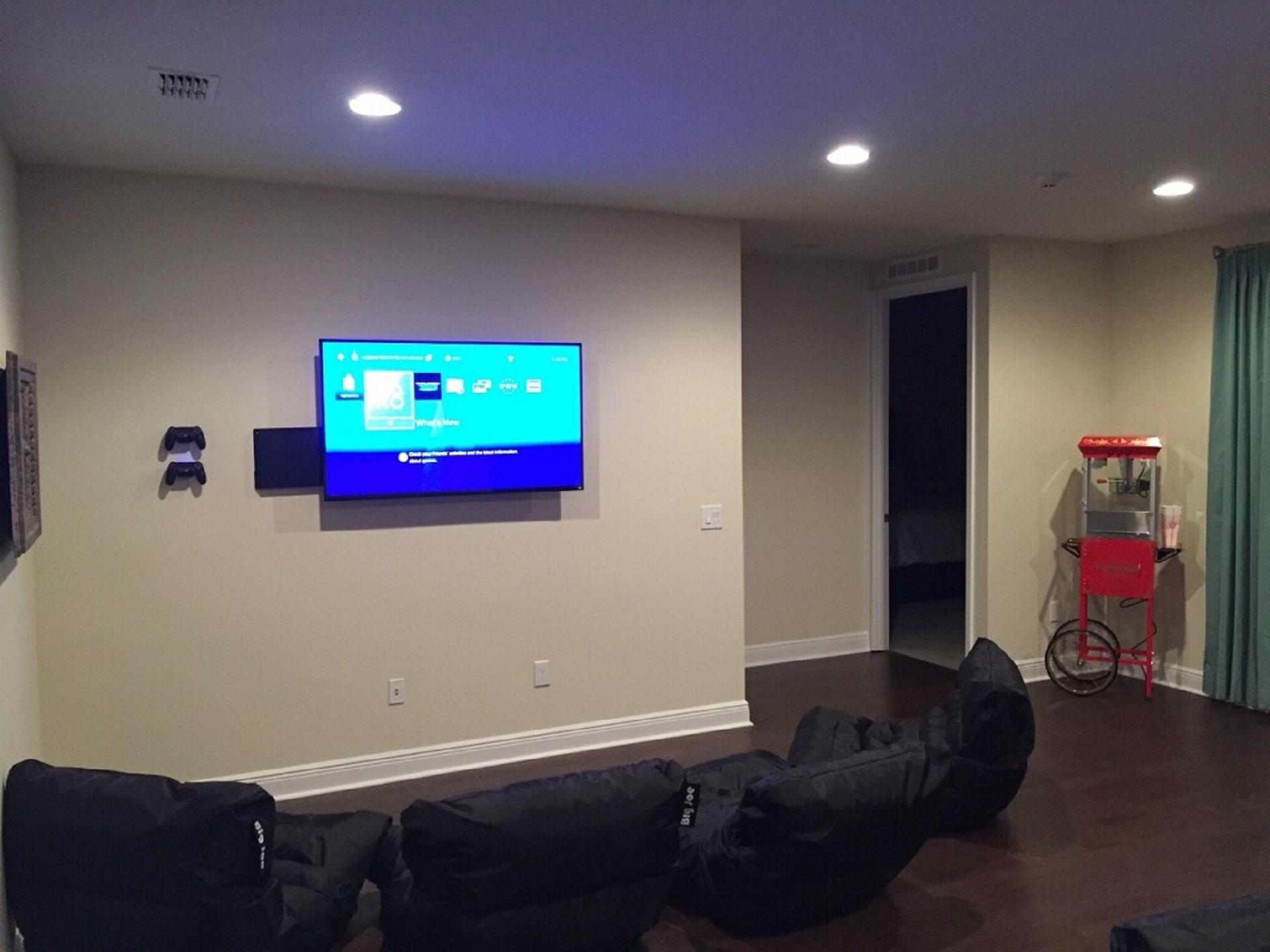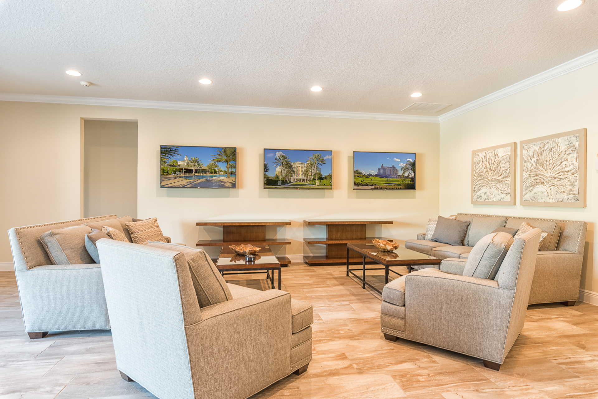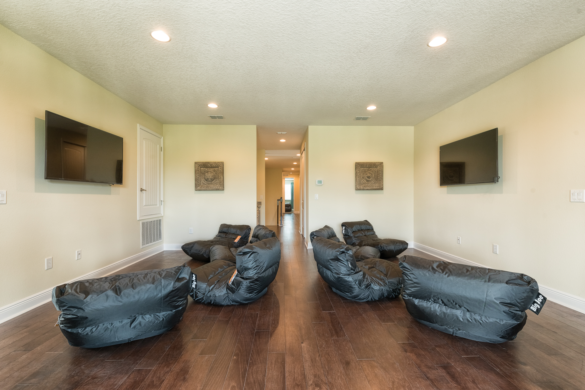 Main living area has 3x large flat screen TVs