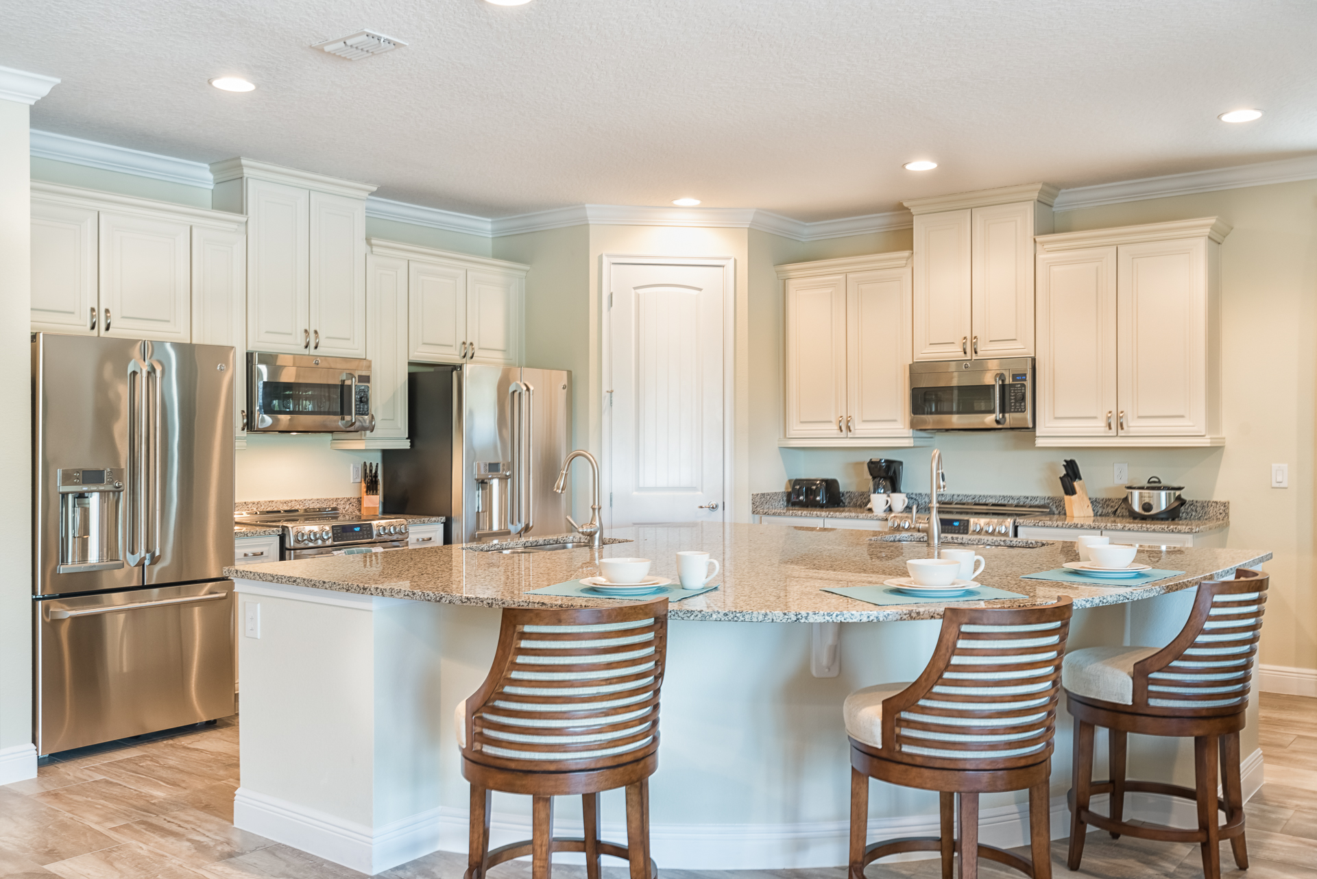 2x Refrigerator/freezers, 2x ovens, 2x microwaves, 2x dishwashers, coffee maker, toaster