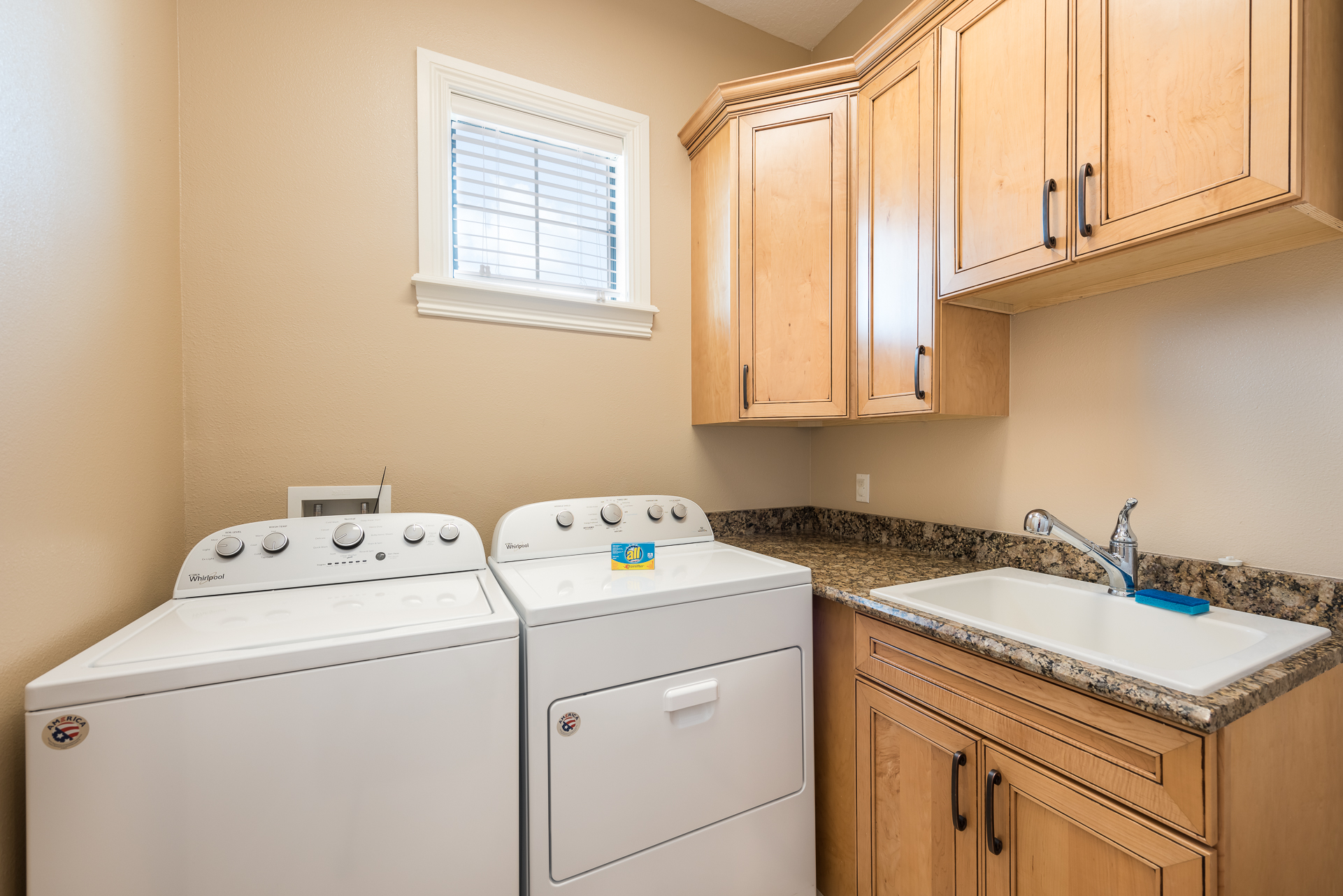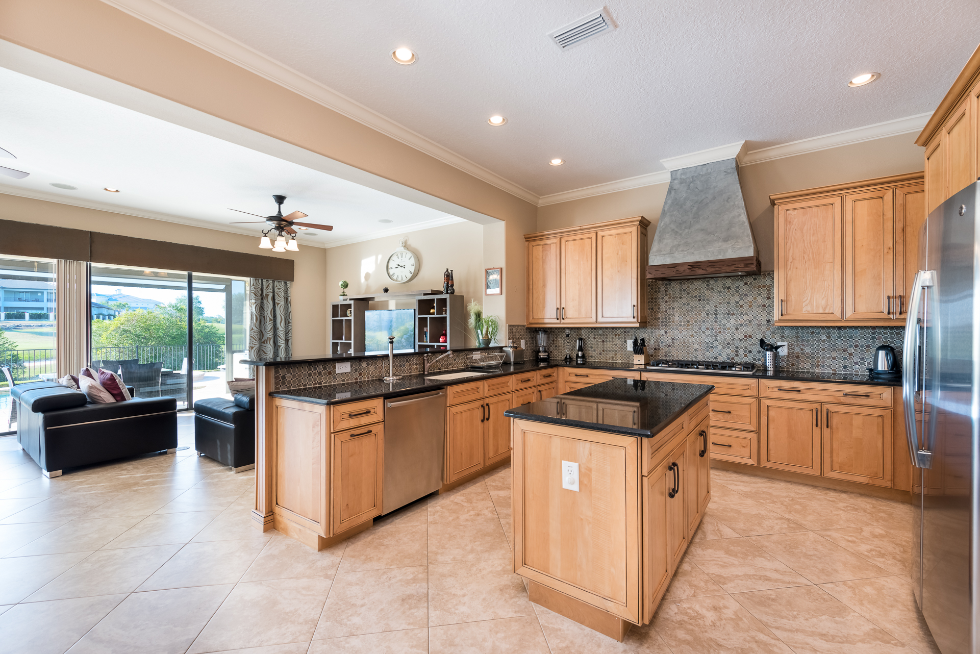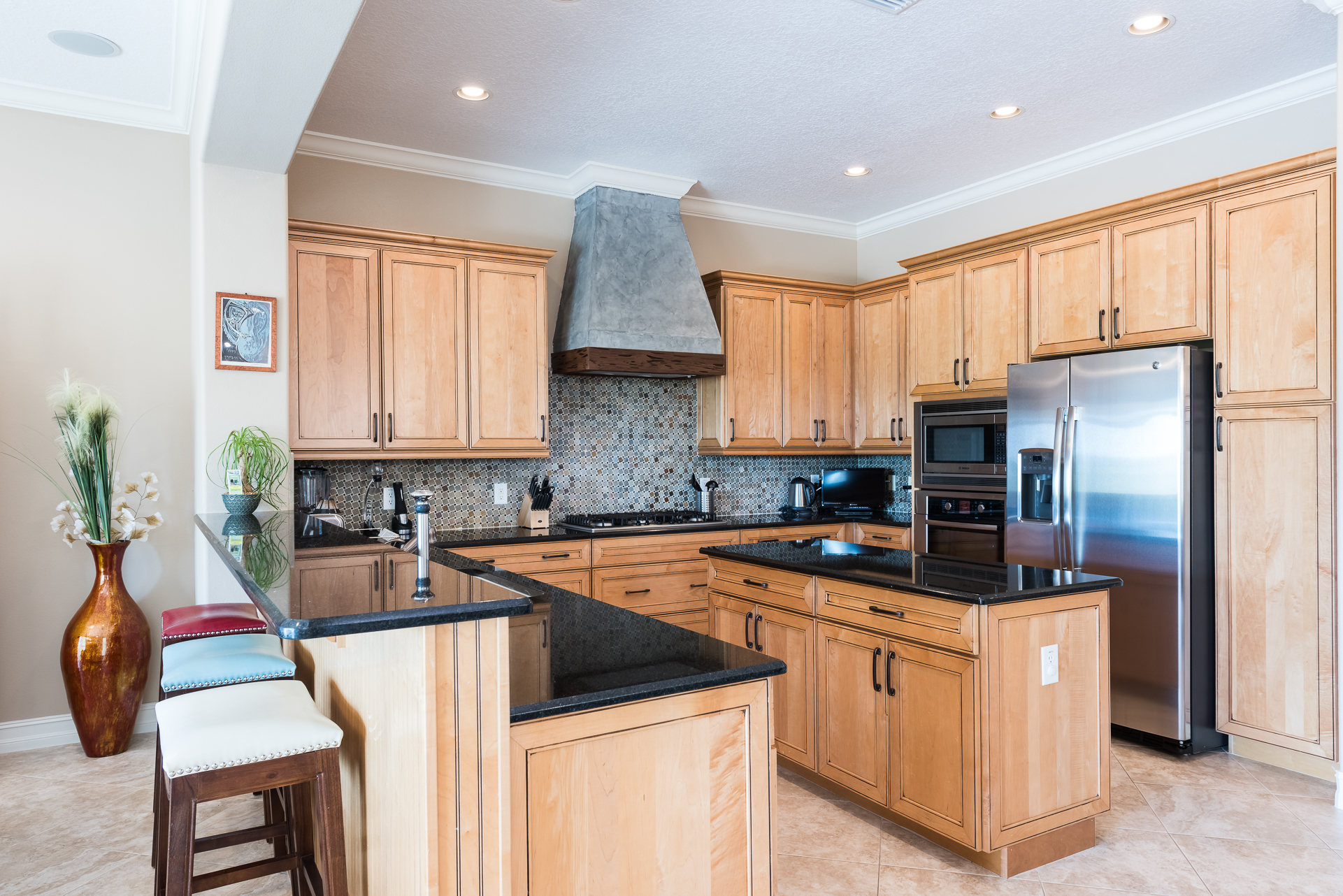 Fully equipped with a black granite 3 seat breakfast bar and an additional island